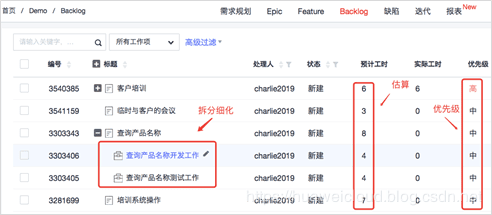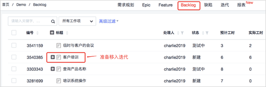 梳理Backlog,高优先级的Backlog放到迭代待办列表即迭代中(更多关于迭代待办列表的内容请参考下面的“了解更多”)中先做。我们一起先来了解一下什么是Backlog。Backlog是一个按优先顺序排列的、预期产品功能的列表。再来理解一下什么是工作项。工作项是Backlog中的待办事项。对用户和客户来说,大多数的工作项都是有实际价值的特性和功能,当然也包括一些需要缺陷修复、技术改进、知识获取等工作以及产品负责人认为有价值的任何工作(当然有价值的突发性工作也属于工作项)。