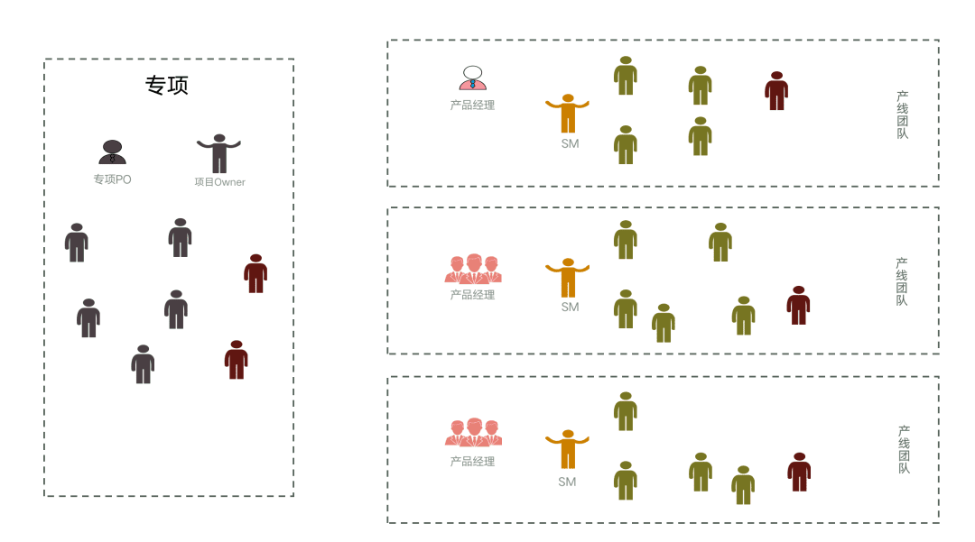 实际运作过程中,通过一定的措施,让专项需求实际在迭代团队中交付: