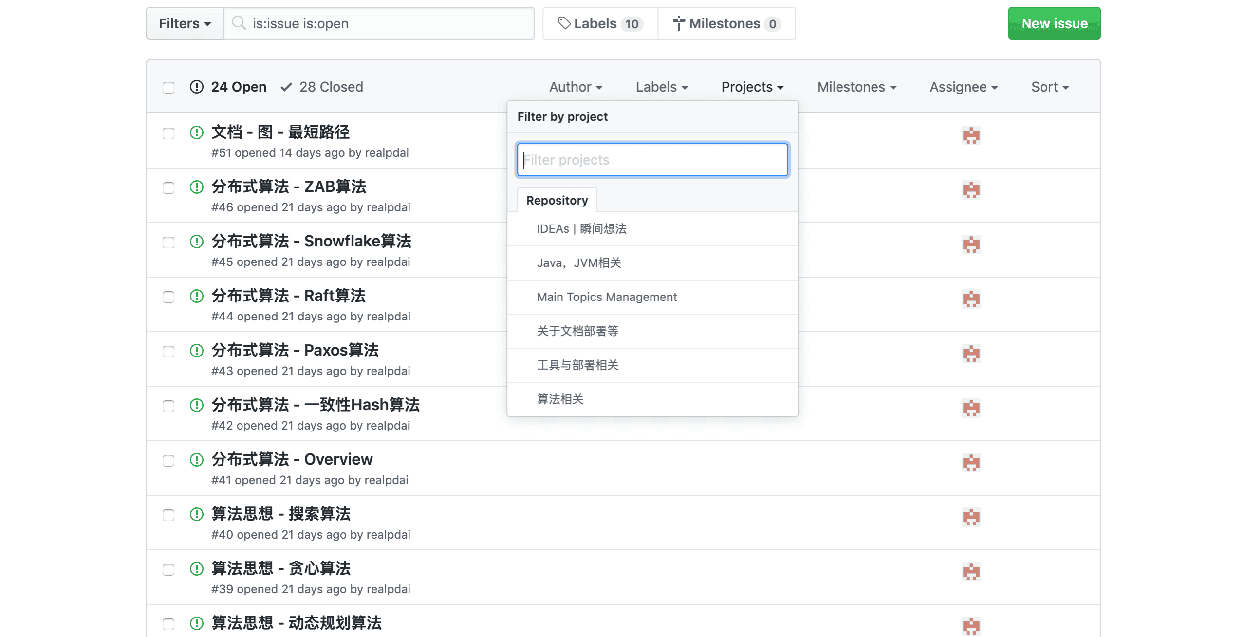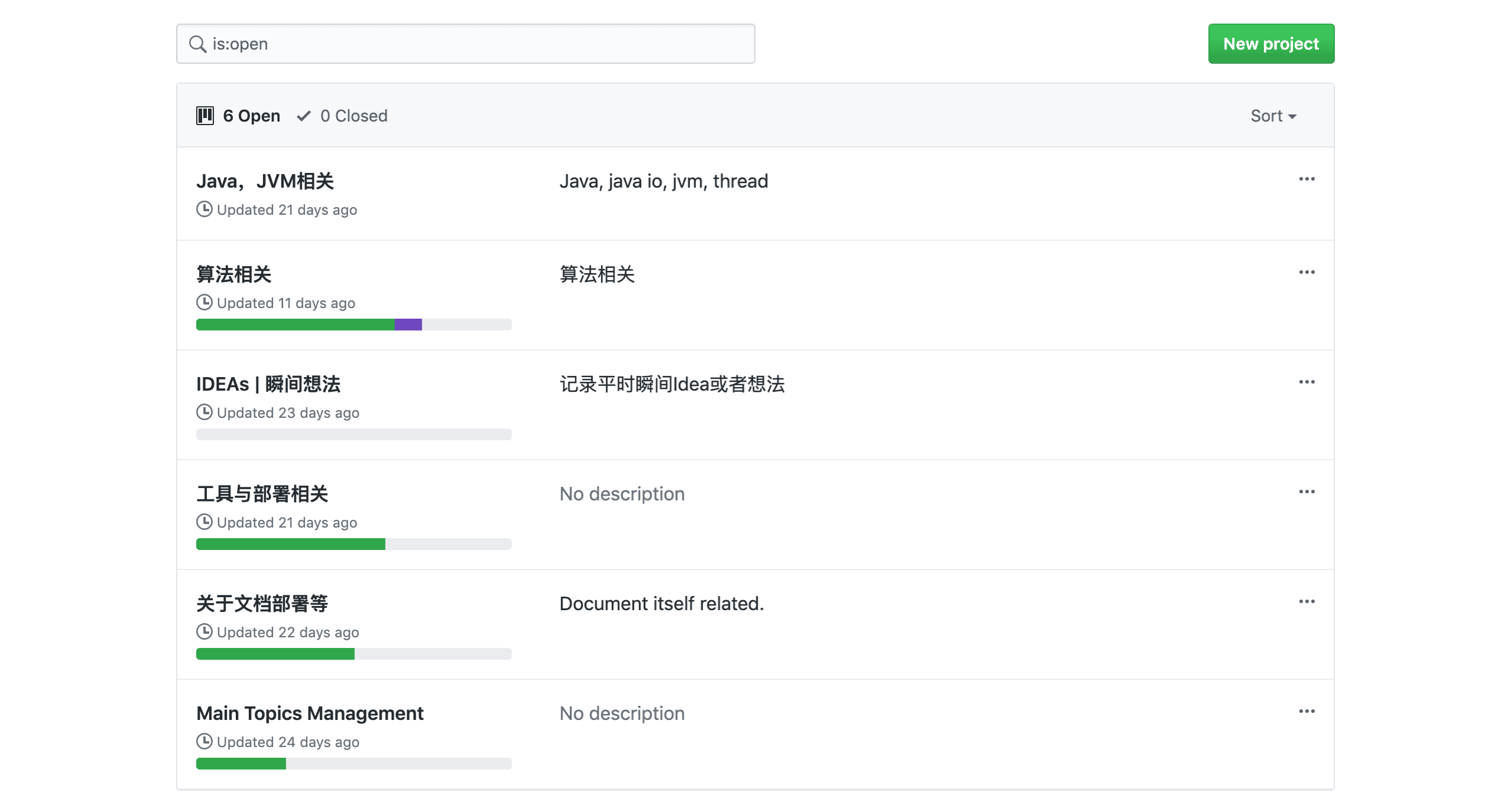 在创建相关的Project之后,会将上述梳理知识章节创建Issues,用于Followup自己的进度。