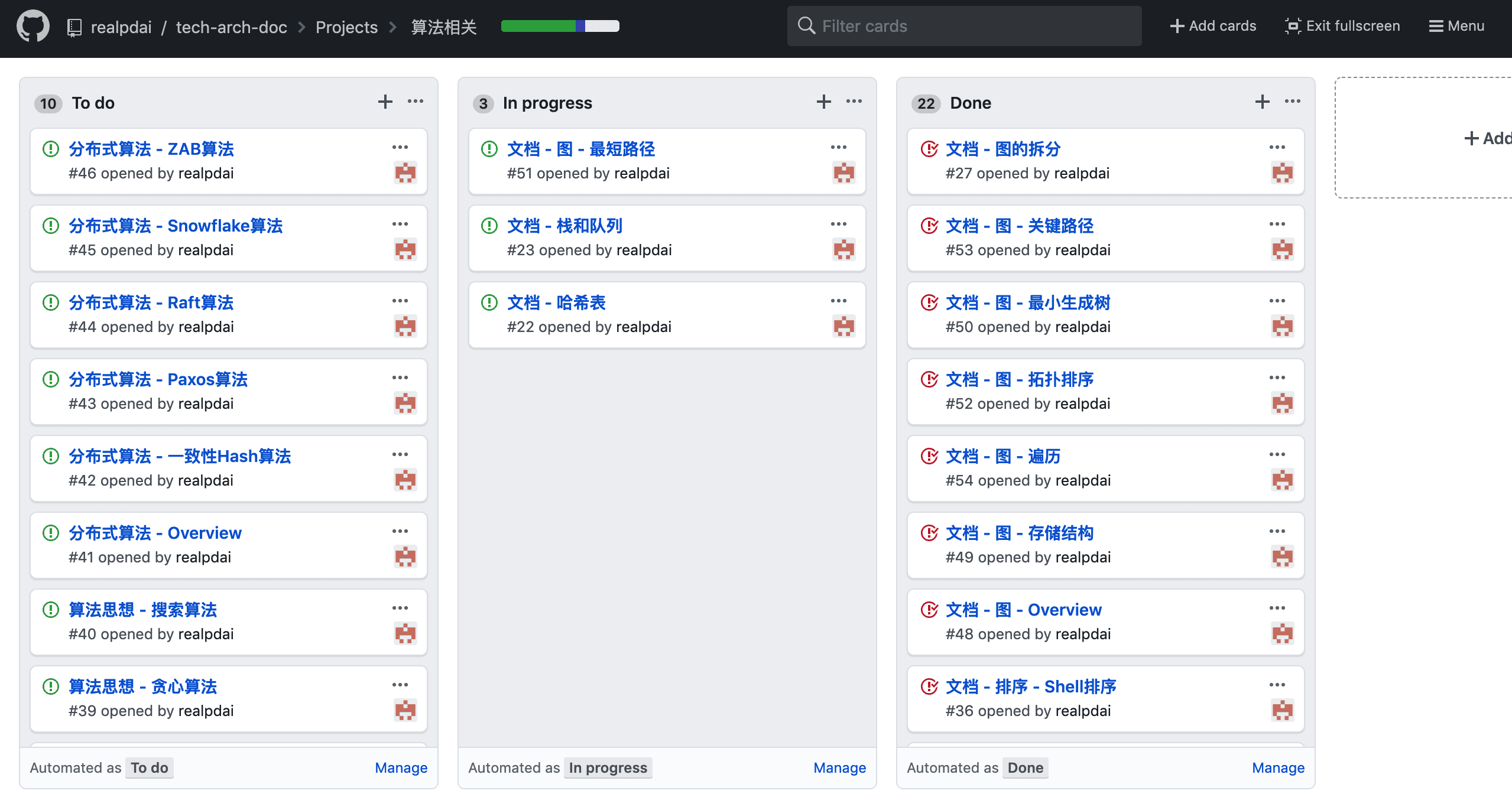 对Issues按照Project为切面,用敏捷看看板的方式纵览完成情况。