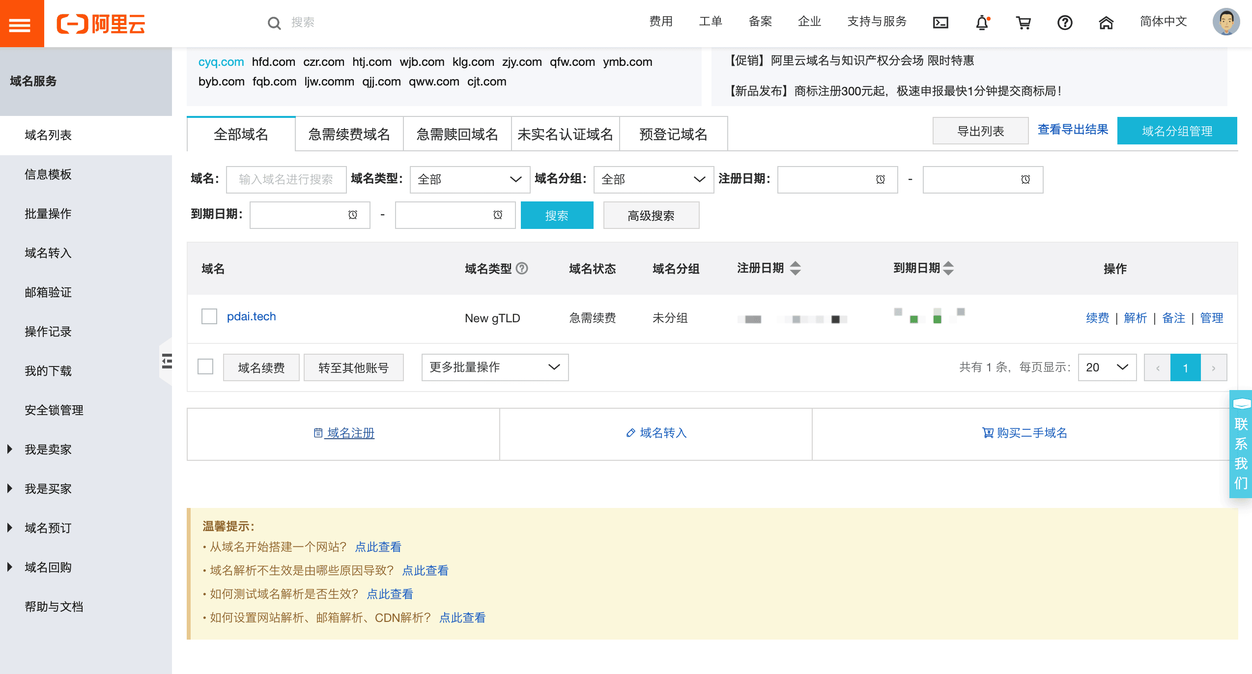 - 申请域名