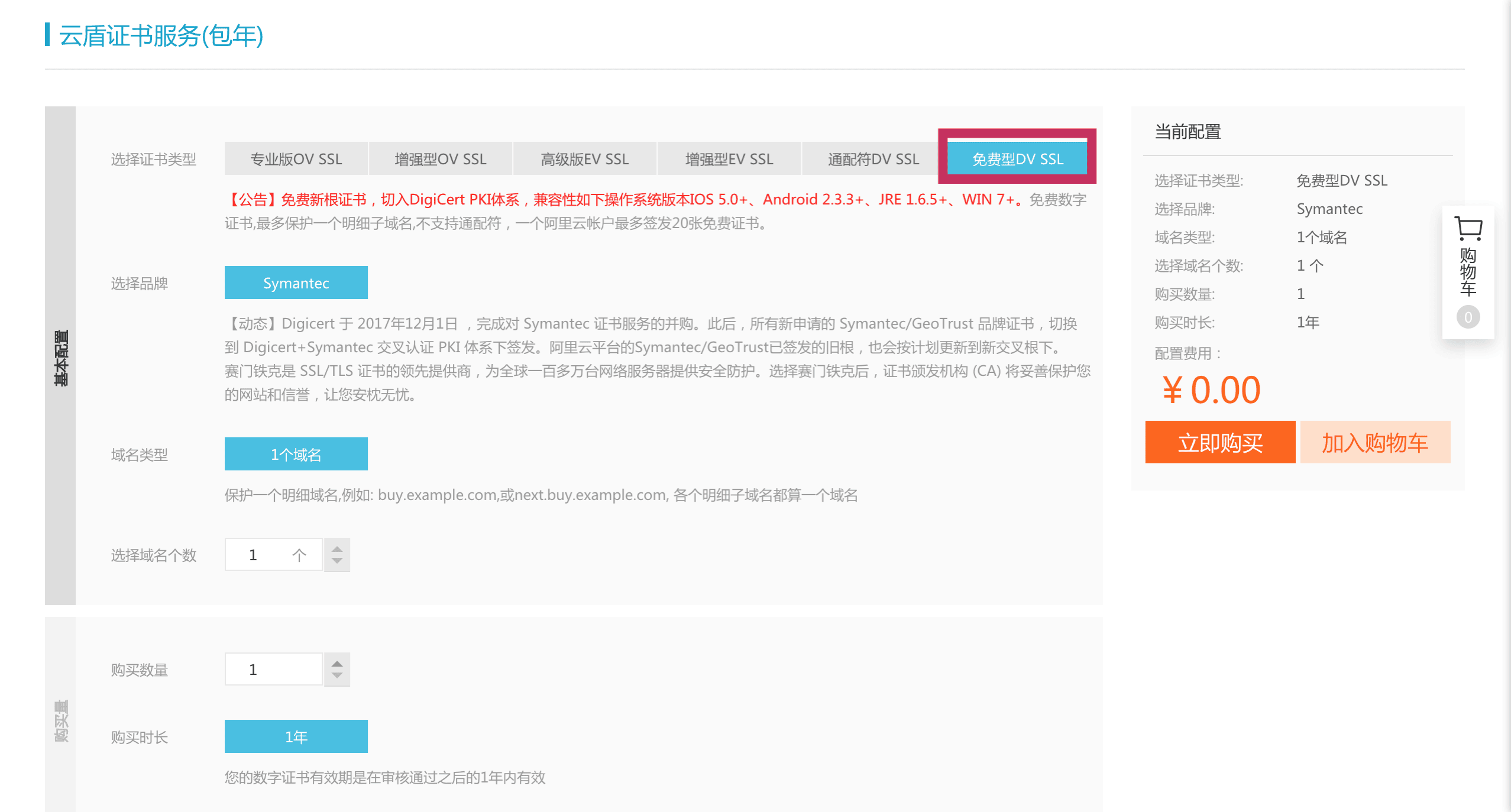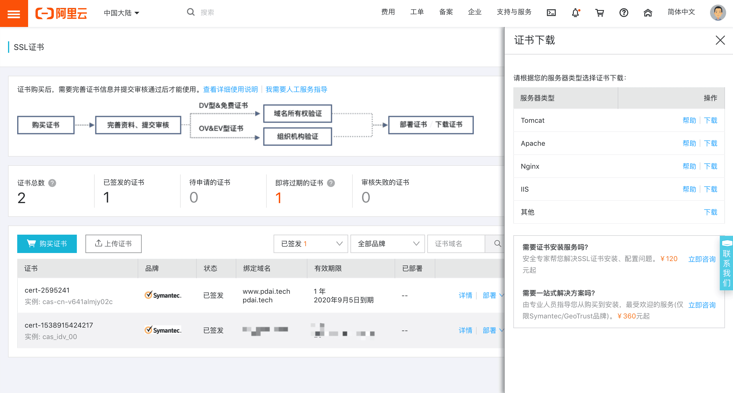 - 阿里云上: SSL证书