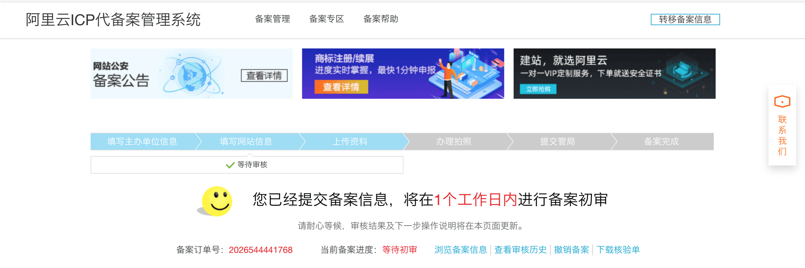 期间需要手机通过阿里云人脸认证,并上传 身份证,域名和证书拍照等。