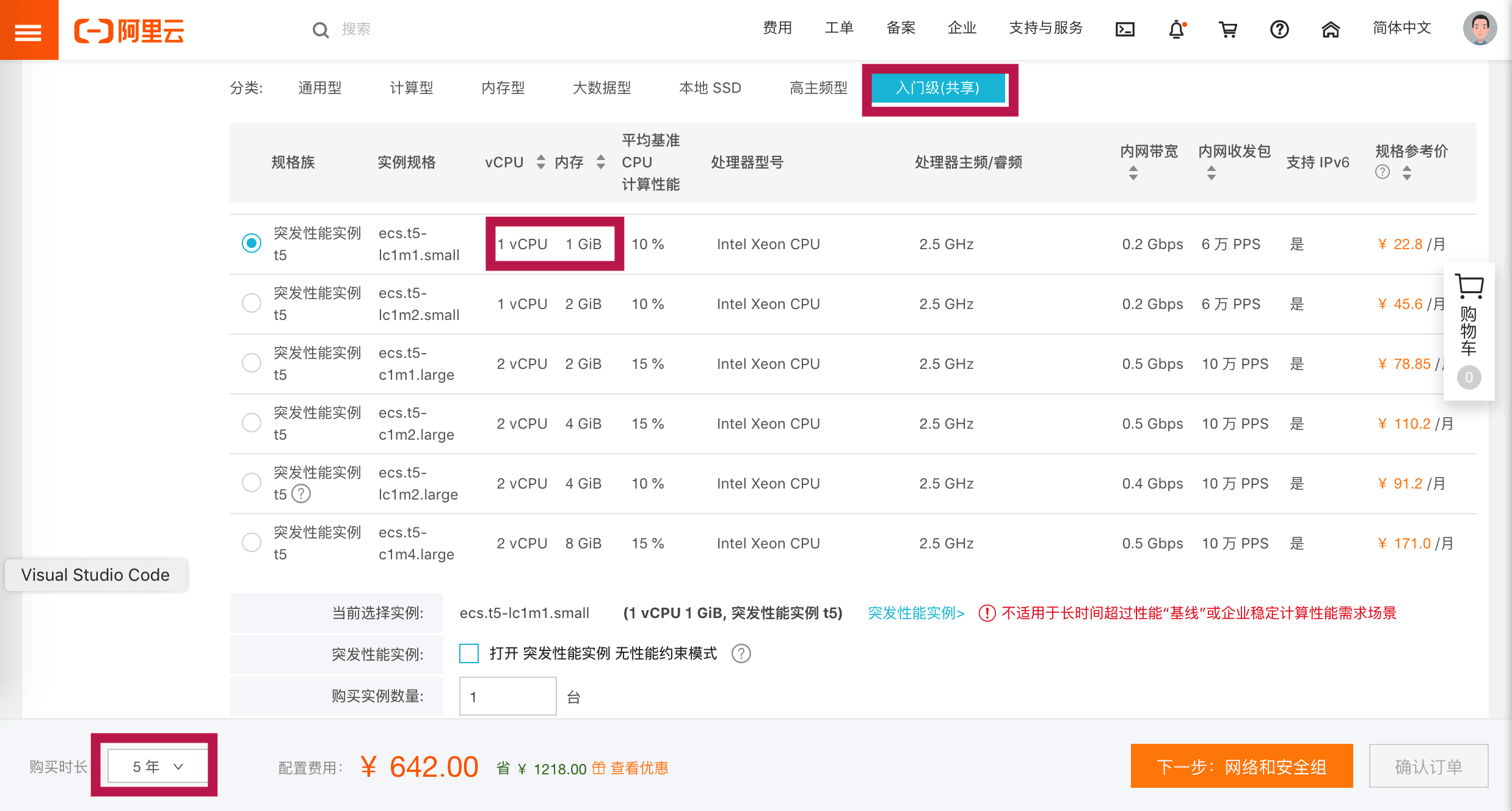 推荐选择1CPU,1-2G内存即可;1Core-1GB一年价格287多,选择五年也就642多;后期如有需求,可以在线