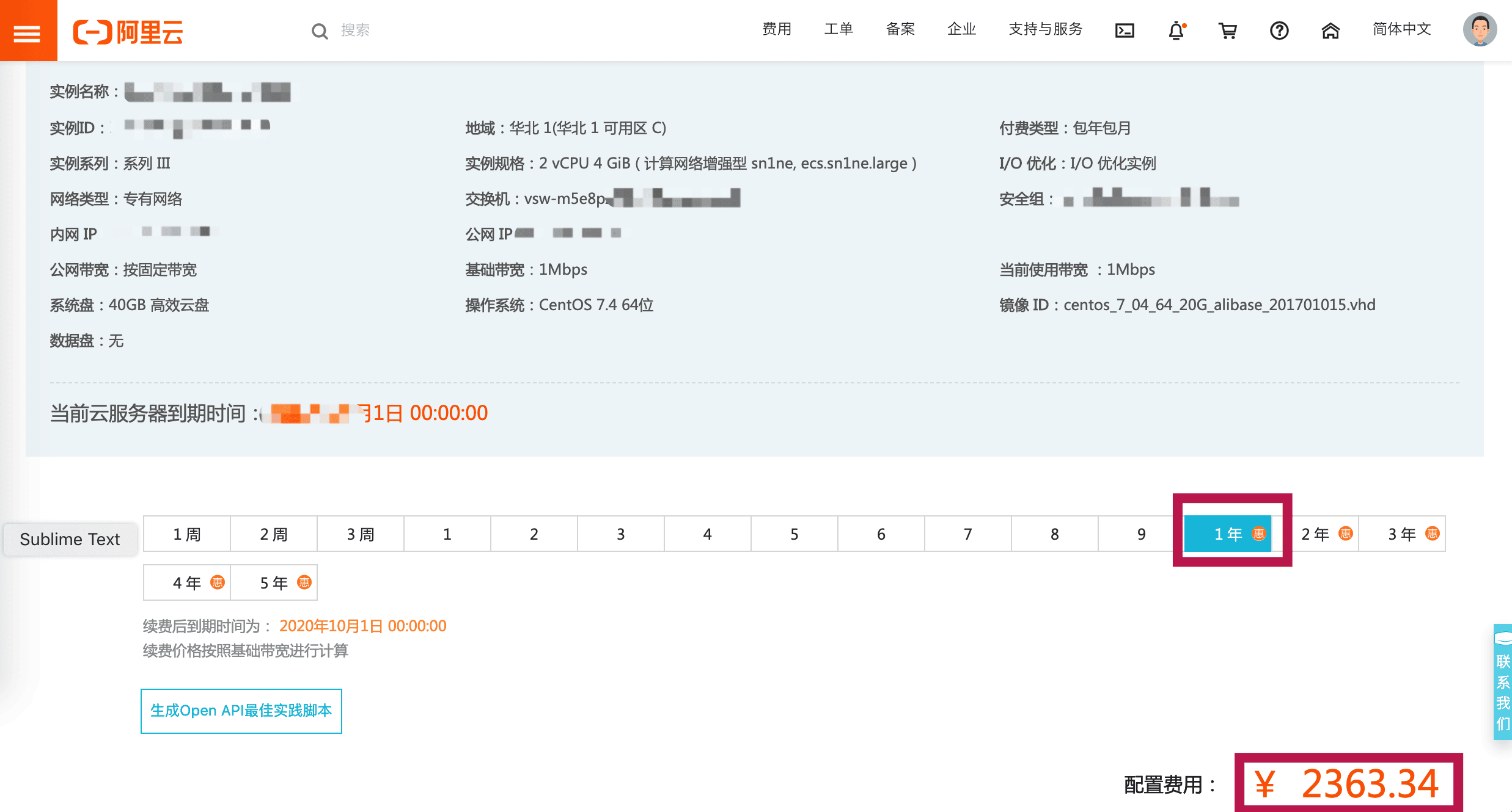 - 关于续费,我之前选择是2CPU,4GB内存;当初一年是780,续费价格是2363;