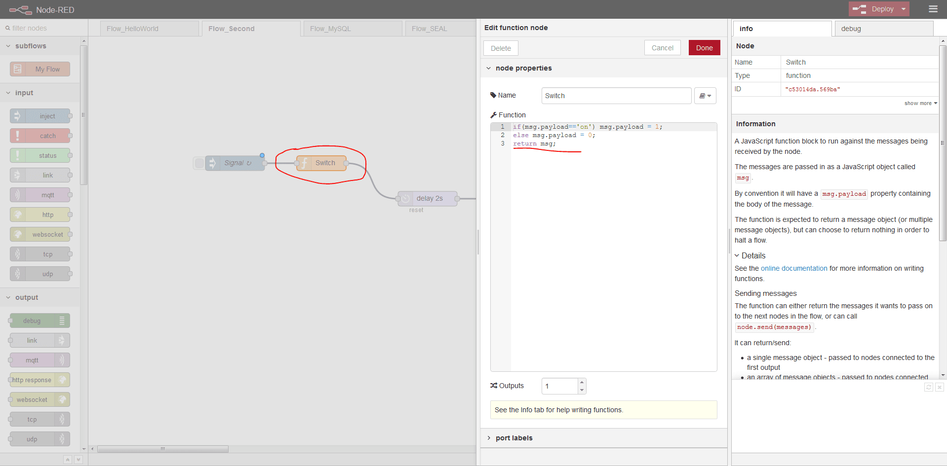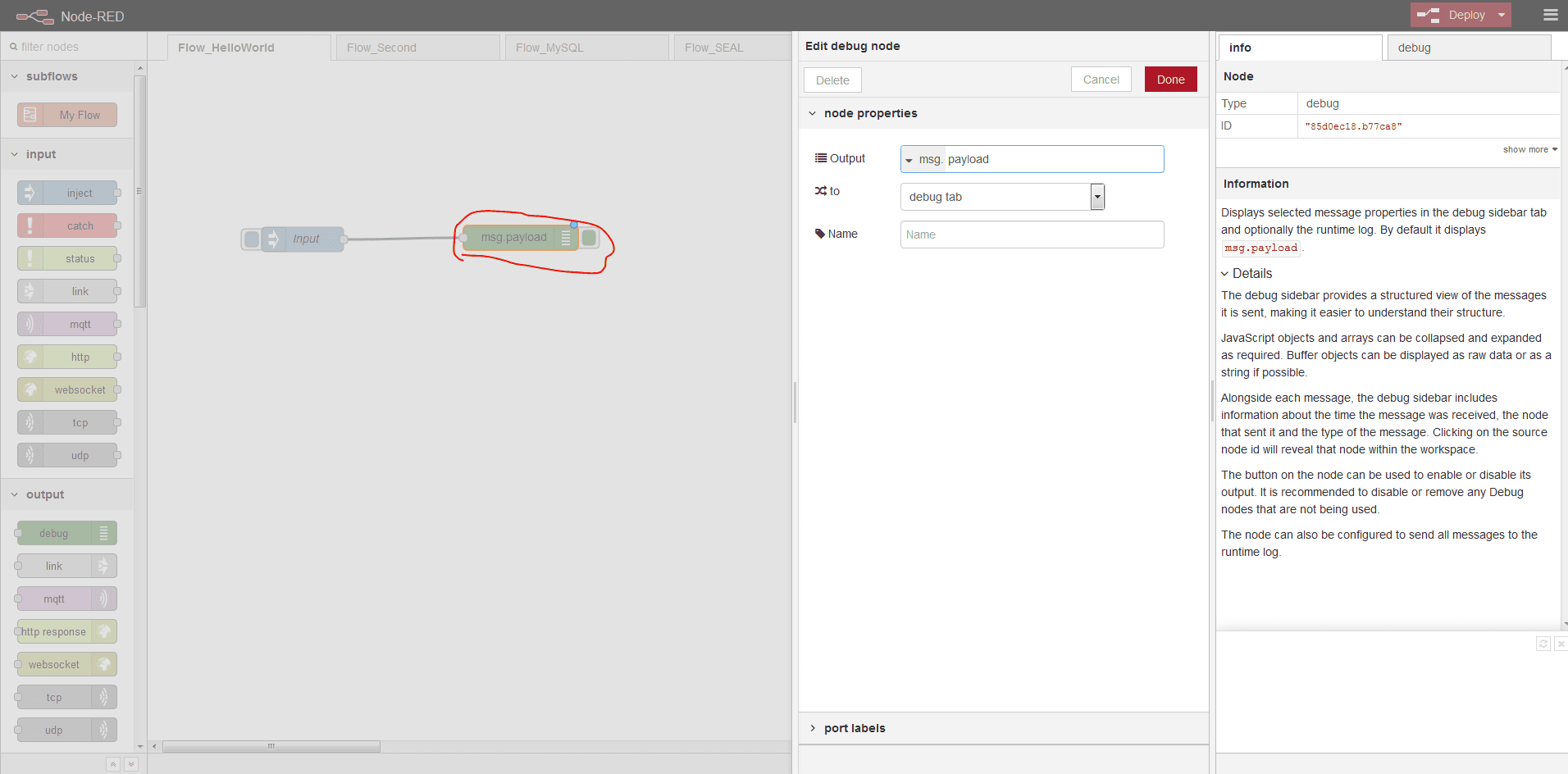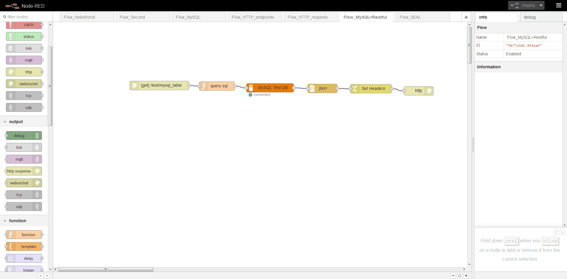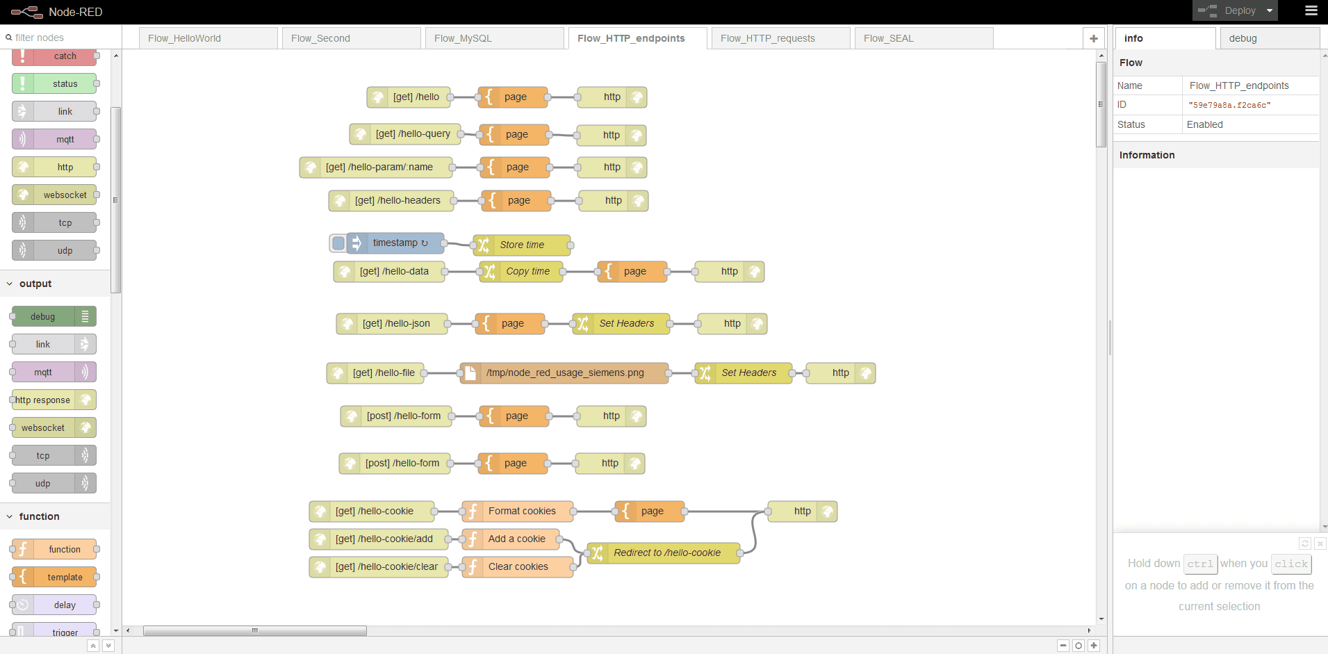 Node-RED provides a browser-based flow editor that makes it easy to wire together flows using the wide range of nodes in the palette. Flows can be then deployed to the runtime in a single-click.
