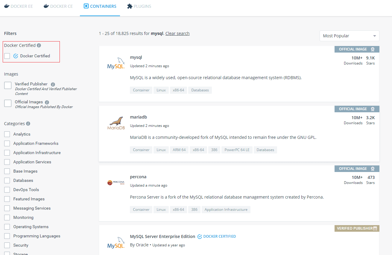 mysql/mysql-server Optimized MySQL Server Docker images. Create… 676 [OK]