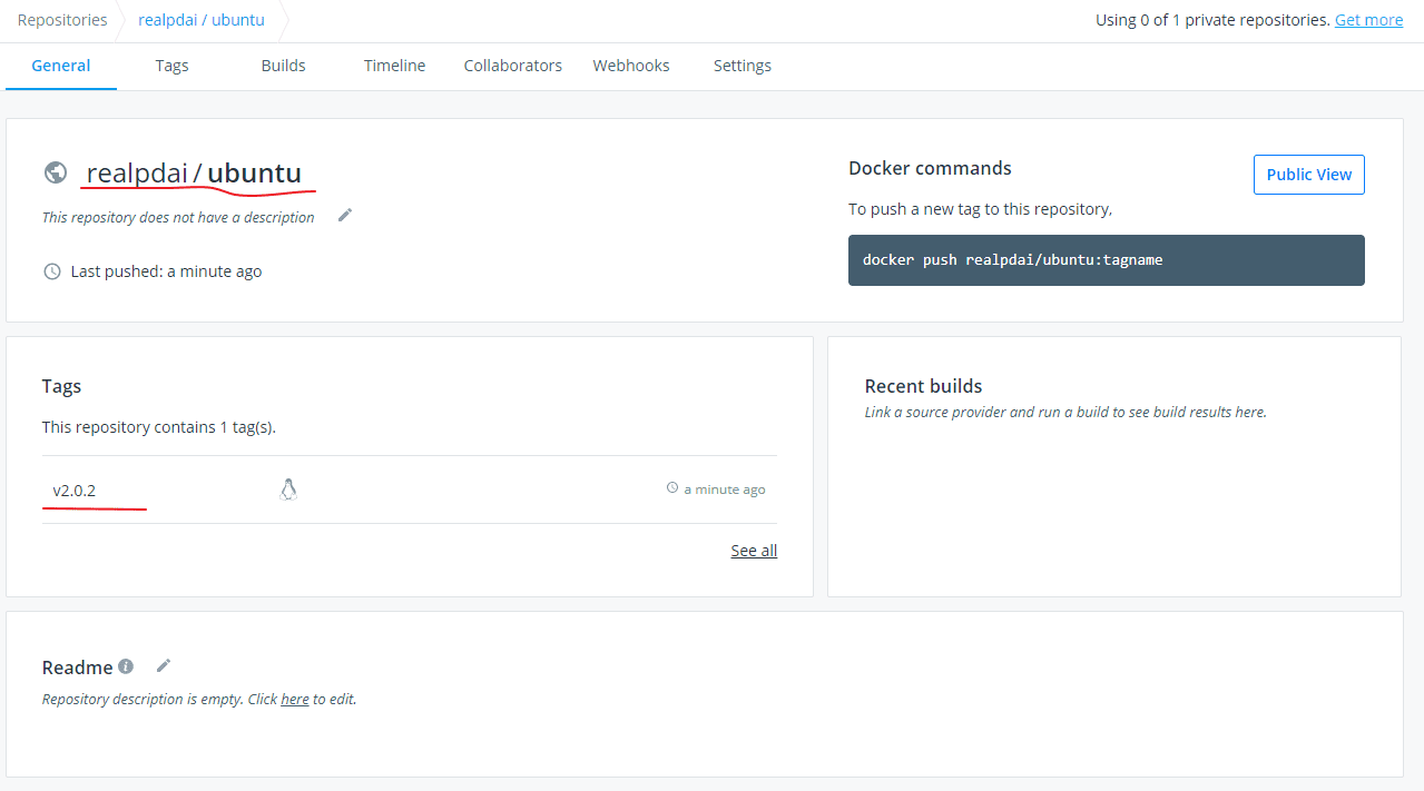 [root@pdai ~]# docker push realpdai/ubuntu:v2.0.2
