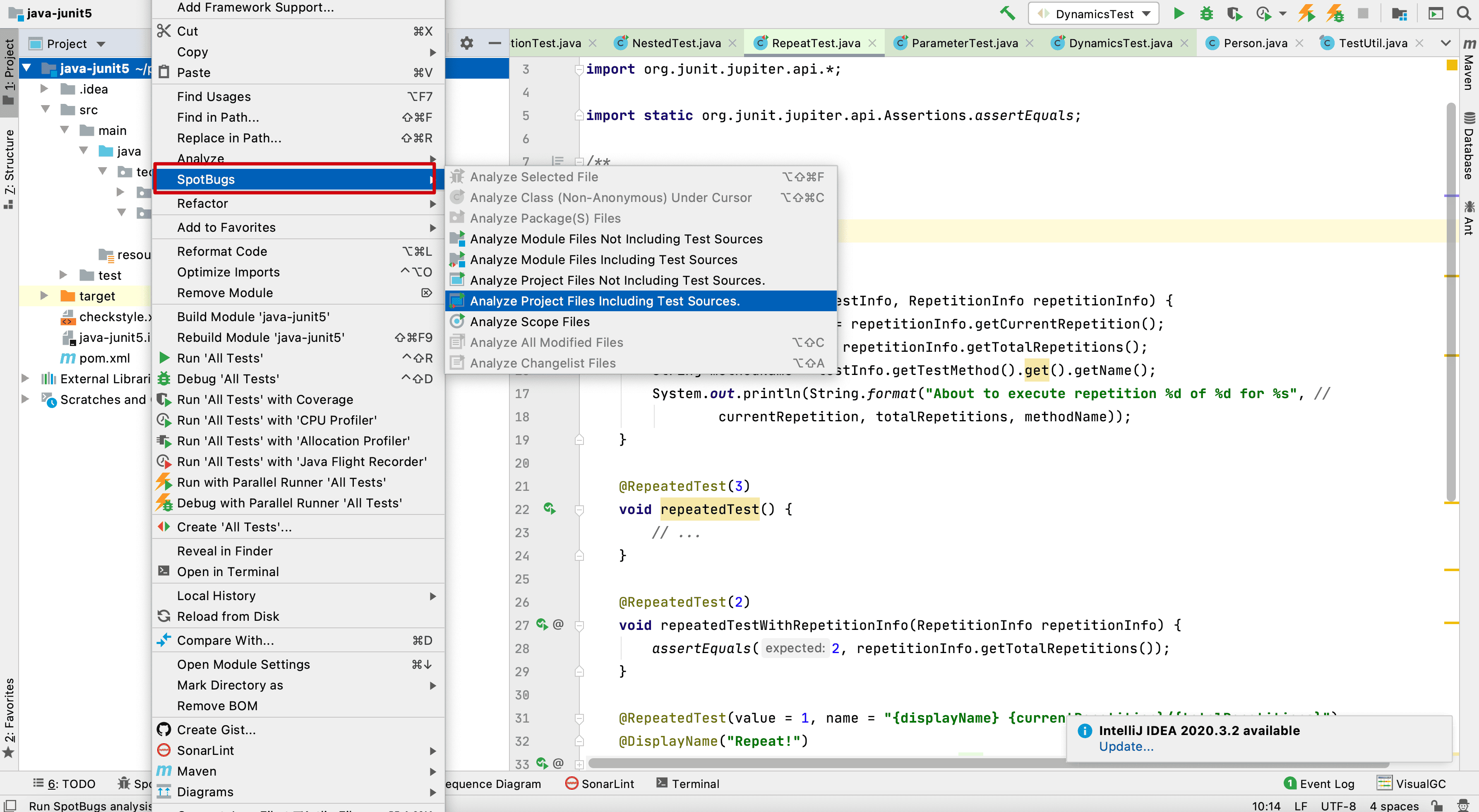 IntelliJ SpotBugs插件提供静态字节代码分析,以从IntelliJ IDEA中查找Java代码中的错误。SpotBugs是Java的缺陷检测工具,它使用静态分析来查找 400 多种错误模式,例如空指针取消引用,无限递归循环,对Java库的错误使用和死锁。SpotBugs可以识别大型应用程序中的数百个严重缺陷(通常每 1000-2000 行非注释源语句中大约有 1 个缺陷)。