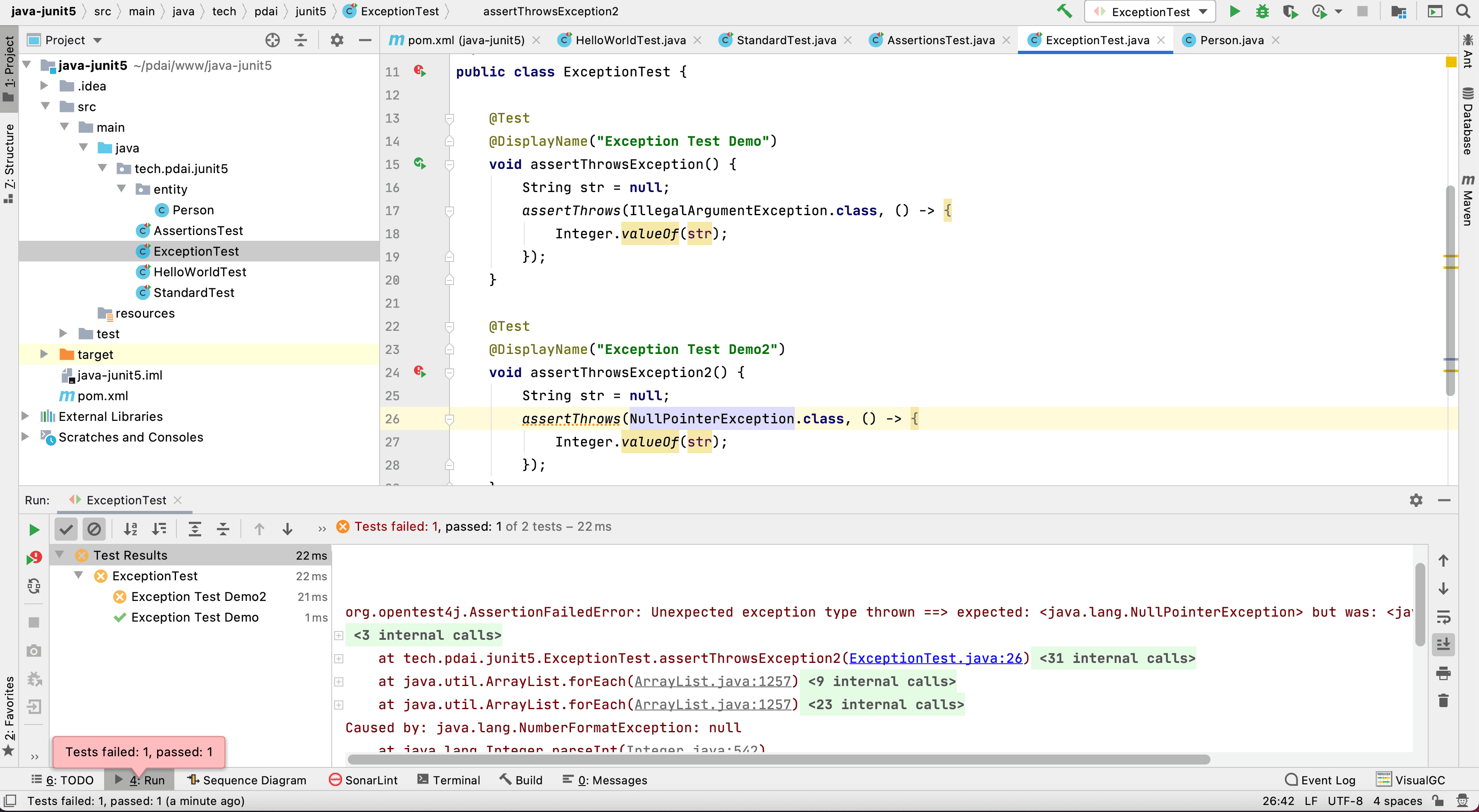 @Test注解在方法上标记方法为测试方法,以便构建工具和 IDE 能够识别并执行它们。JUnit 5不再需要手动将测试类与测试方法为public,包可见的访问级别就足够了。