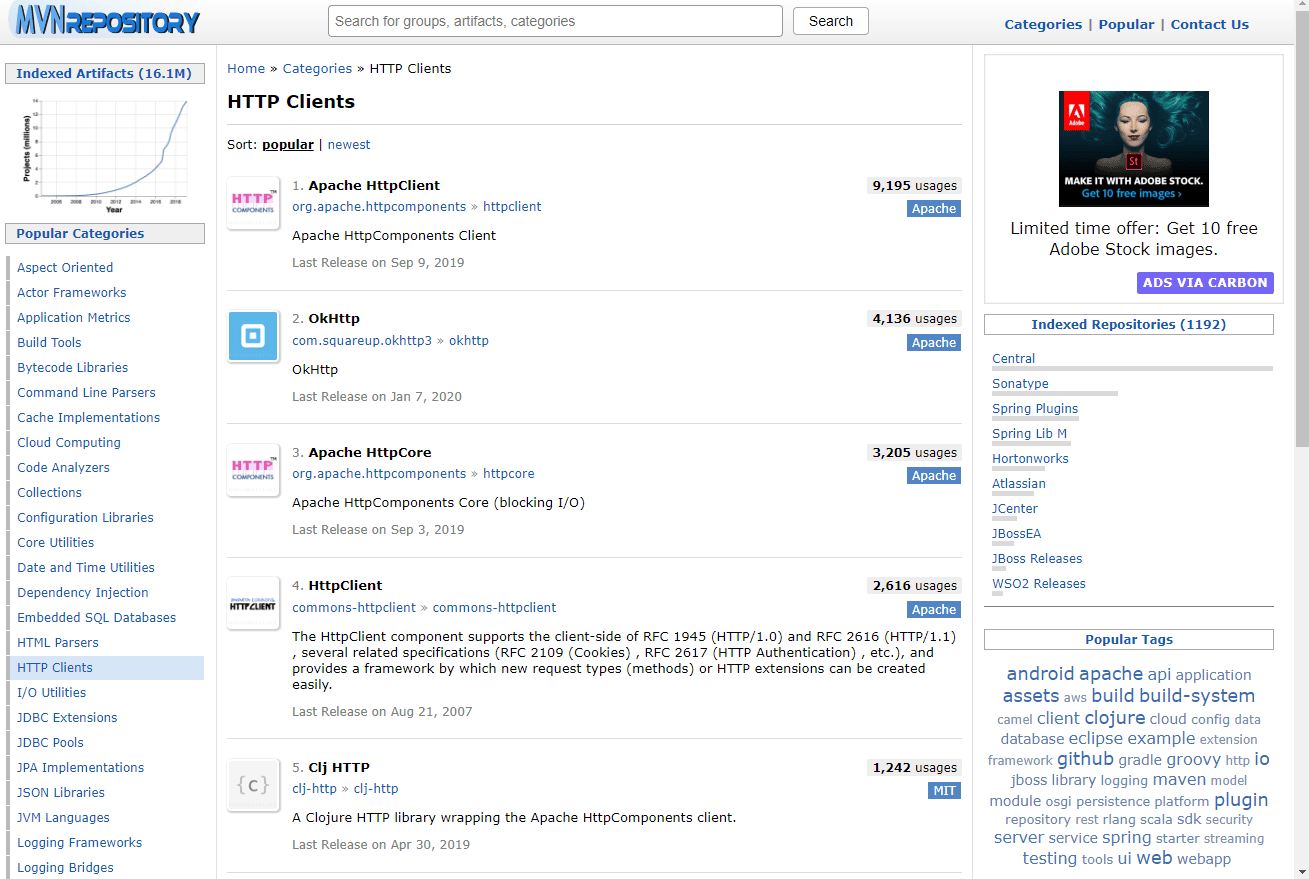 想了解哪个常用类库用的最多? 看这里搜索吧: Maven 仓库在新窗口打开