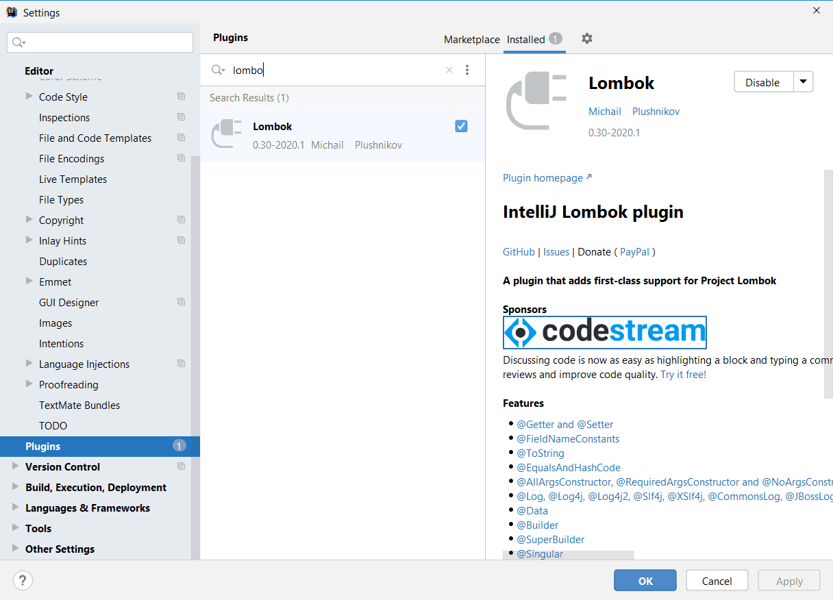IDEA搜索Lombok插件