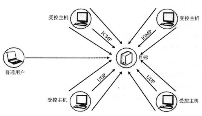 一个完整的DDoS攻击体系由攻击者、主控端、代理端和攻击目标四部分组成。主控端和代理端分别用于控制和实际发起攻击,其中主控端只发布命令而不参与实际的攻击,代理端发出DDoS的实际攻击包。对于主控端和代理端的计算机,攻击者有控制权或者部分控制权.它在攻击过程中会利用各种手段隐藏自己不被别人发现。真正的攻击者一旦将攻击的命令传送到主控端,攻击者就可以关闭或离开网络.而由主控端将命令发布到各个代理主机上。这样攻击者可以逃避追踪。每一个攻击代理主机都会向目标主机发送大量的服务请求数据包,这些数据包经过伪装,无法识别它的来源,而且这些数据包所请求的服务往往要消耗大量的系统资源,造成目标主机无法为用户提供正常服务。甚至导致系统崩溃。