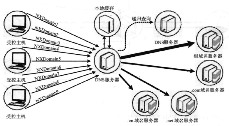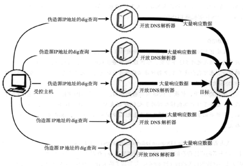 在DNS解析的过程中,客户端发起一次查询请求,DNS服务器可能需要进行额外的多次查询才能完成解析的过程并给出应答,在这个过程中会消耗一定的计算和网络资源,如果攻击者利用大量受控主机不断发送不同域名的解析请求,那么DNS服务器的缓存会被不断刷新,而大量解析请求不能命中缓存又导致DNS服务器必须消耗额外的资源进行迭代查询,这会极大的增加DNS服务器的资源消耗,导致DNS响应缓慢甚至完全拒绝服务。