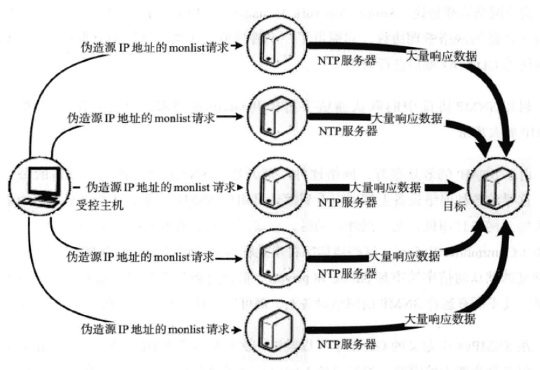 在NTP协议的服务器实现上,通常会实现一系列Mode 7的调试接口,而接口中的monlist请求能够获取到目标NTP服务器进行同步的最后600个客户端的IP地址等信息。这意味着,只需要发送一个很小的请求包,就能触发大量连续的包含IP地址信息等数据的UDP响应数据包。
