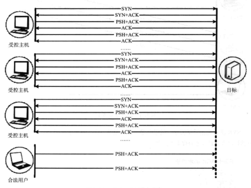 从骨干网上来看,这些僵尸主机之间相互收发的数据包确实是真是存在的通信数据,没有办法将这些通信数据与真正的合法通信数据进行有效的区分,因此这种攻击方式更加难以防护和缓解。