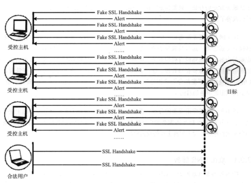 在进行SSL握手的过程中,服务器会消耗较多的CPU计算资源进行加解密,并进行数据的有效性检验,对于客户端发过来的数据,服务器需要先花费大量的计算资源进行解密,之后才能对数据的有效性进行检验,重要的是,不论数据是否是有效的,服务器都必须先进行解密才能够做检查,攻击者可以利用这个特性进行SSL洪水攻击。