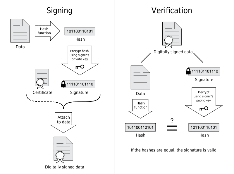 非对称密钥除了用来加密,还可以用来进行签名。因为私有密钥无法被其他人获取,因此通信发送方使用其私有密钥进行签名,通信接收方使用发送方的公开密钥对签名进行解密,就能判断这个签名是否正确。
