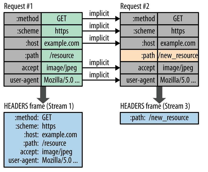 HTTP/2.0 要求客户端和服务器同时维护和更新一个包含之前见过的首部字段表,从而避免了重复传输。