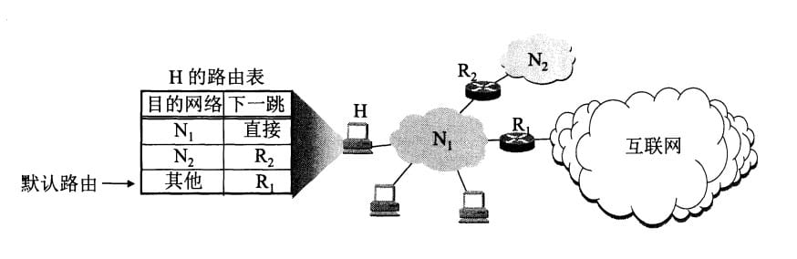 - 若路由表中有一个默认路由,则把数据报传送给路由表中所指明的默认路由器;