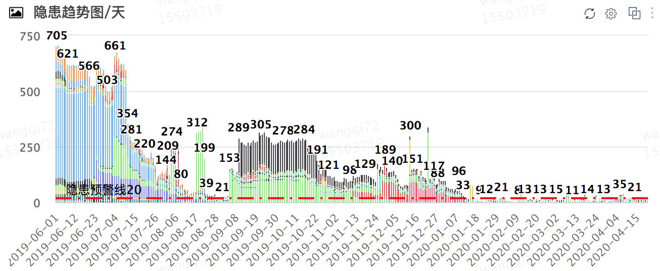 - 隐患明细展示页面会标注每个隐患出现的天数,便于追踪隐患出现原因。
