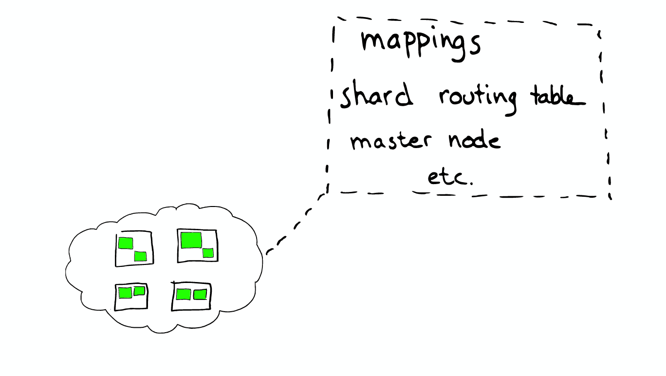 在一个或者多个节点直接,多个绿色小方块组合在一起形成一个ElasticSearch的索引。