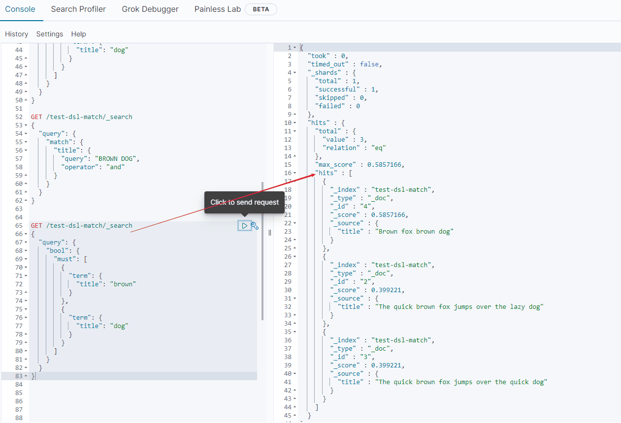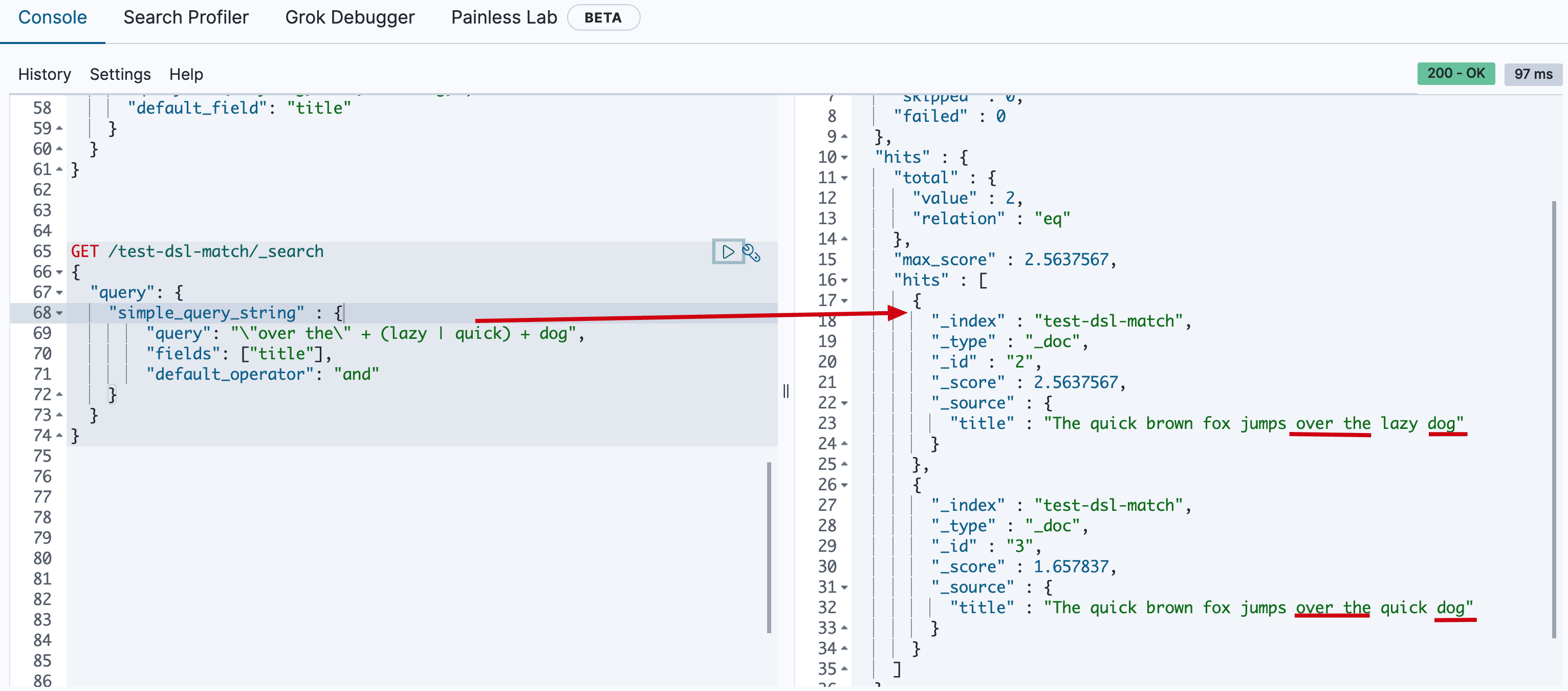 我们在上文中复合查询中已经使用了match多个词,比如“Quick pets”; 这里我们通过例子带你更深入理解match多个词