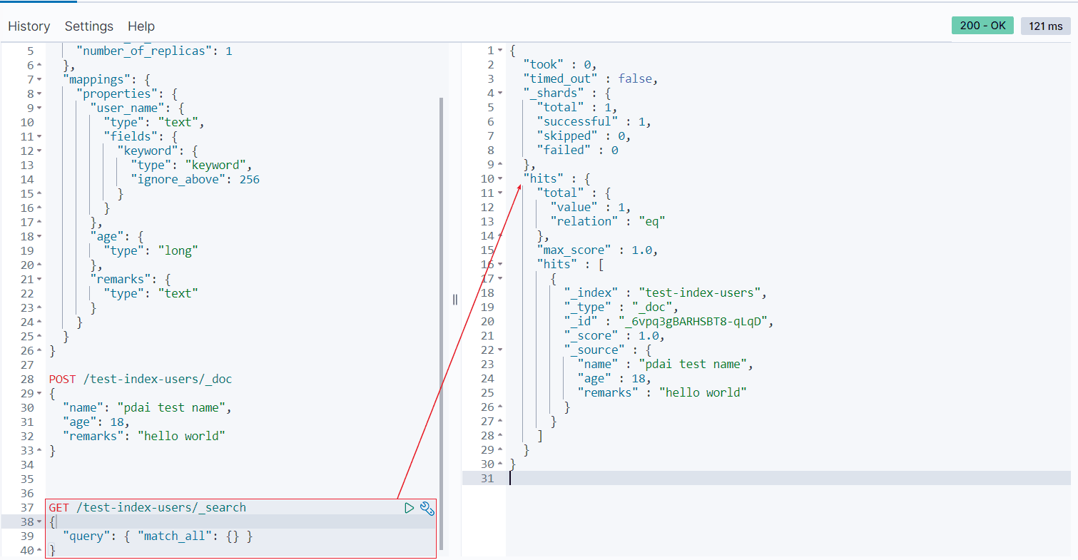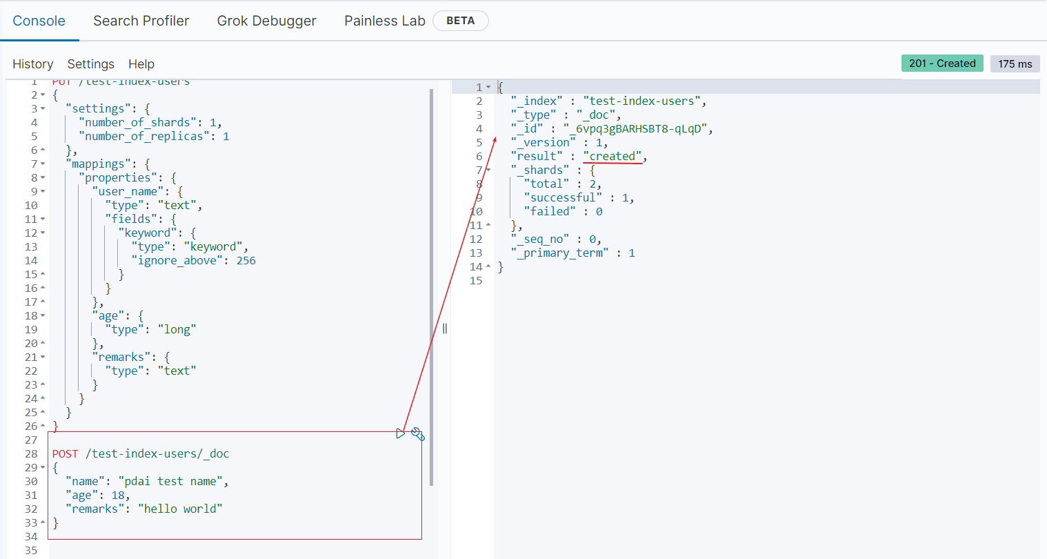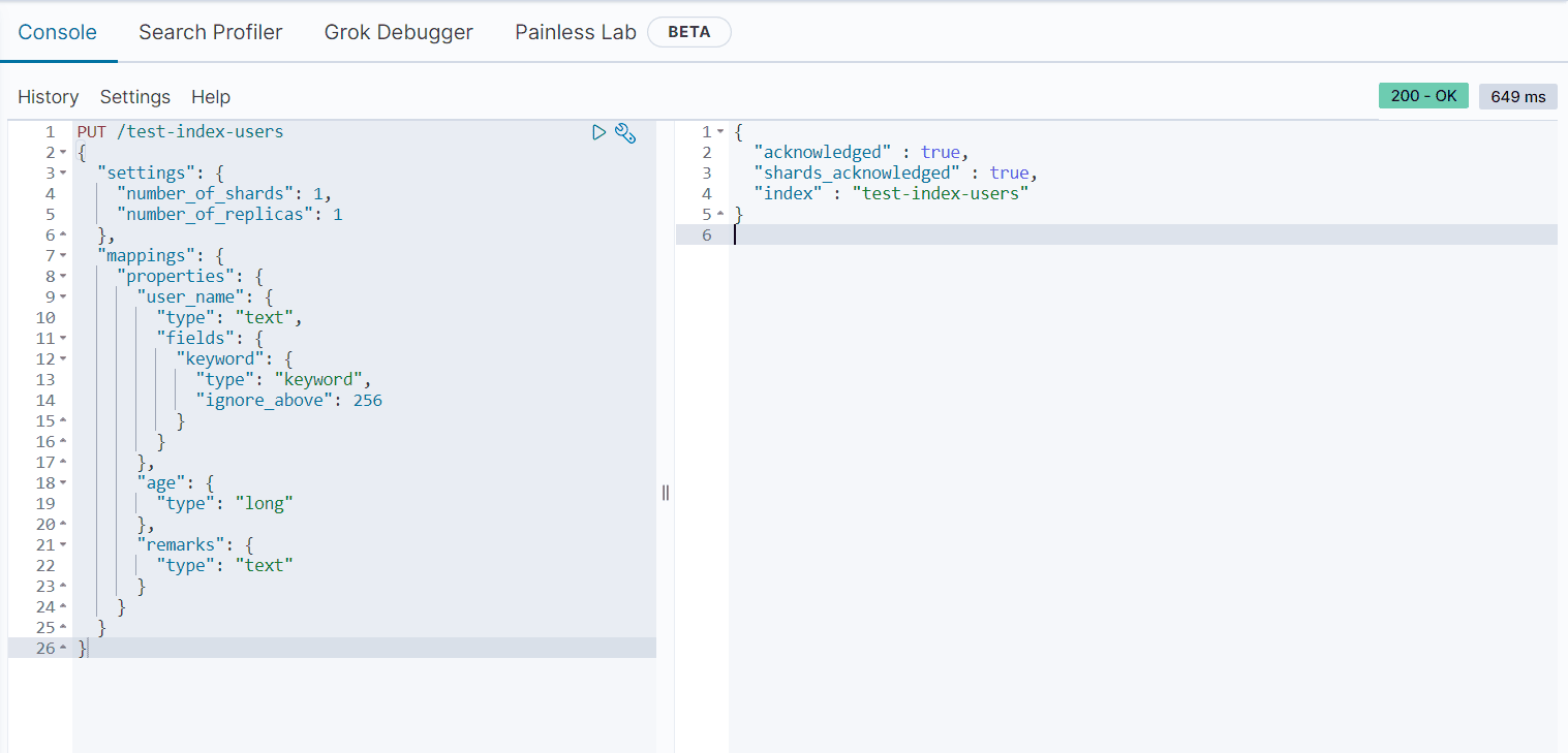 我们创建一个user 索引test-index-users,其中包含三个属性:name,age, remarks; 存储在一个分片一个副本上。