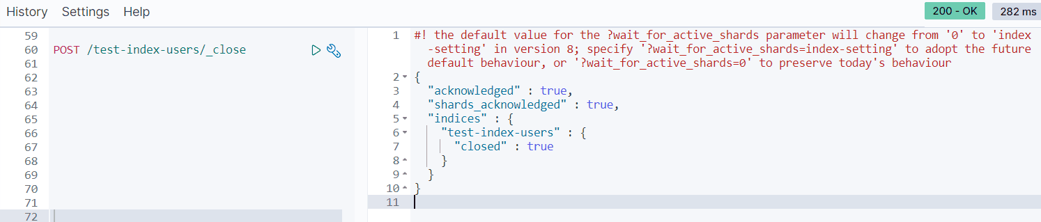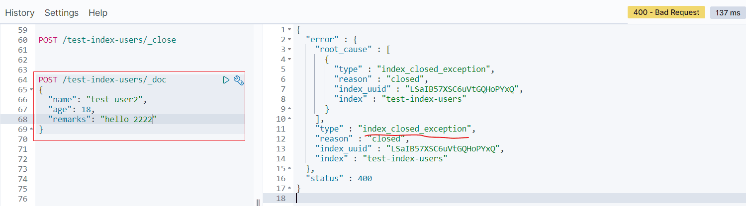 一旦索引被关闭,那么这个索引只能显示元数据信息,不能够进行读写操作。