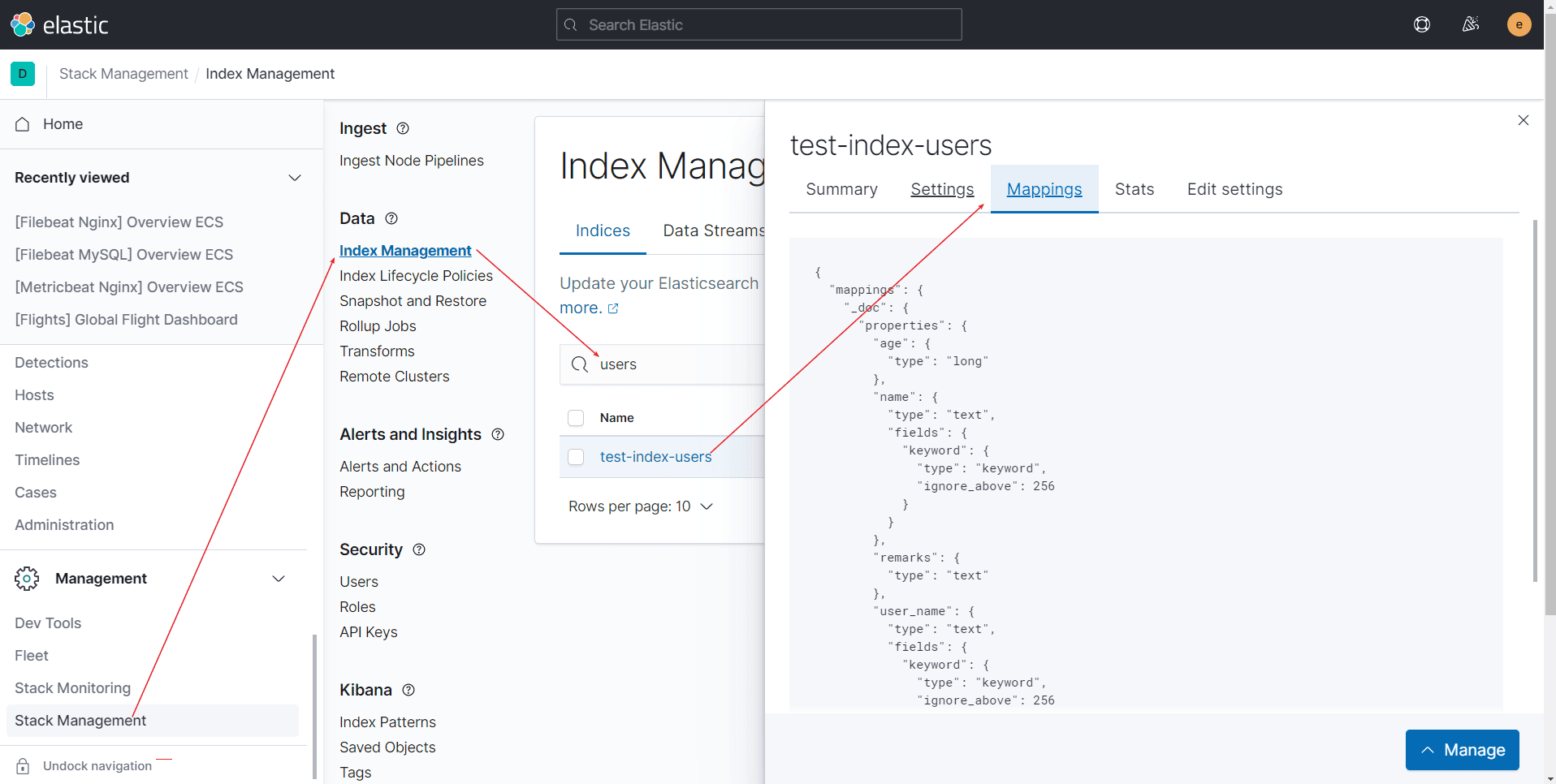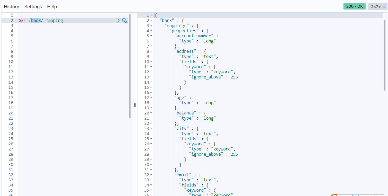 }而这个index实际上已经自动创建了它里面的字段(name)的类型。我们不妨看下它自动创建的mapping: