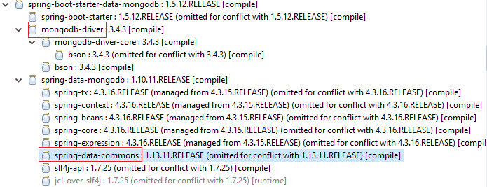 我们通过引入springboot-data-mongo-starter包来看它们之间的层次结构:
