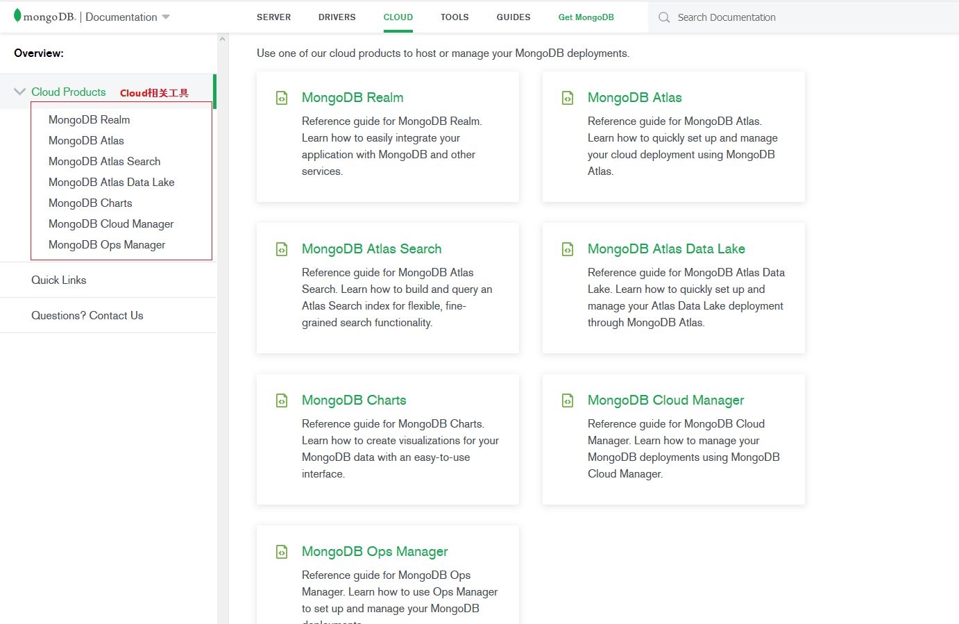 通过命令行进行管理Mongo的工具,支持Cloud和On-premises,Cloud通过MongoDB Atlas支持;On-premises通过 MongoDB Cloud Manager 和 MongoDB Ops Manager支持。