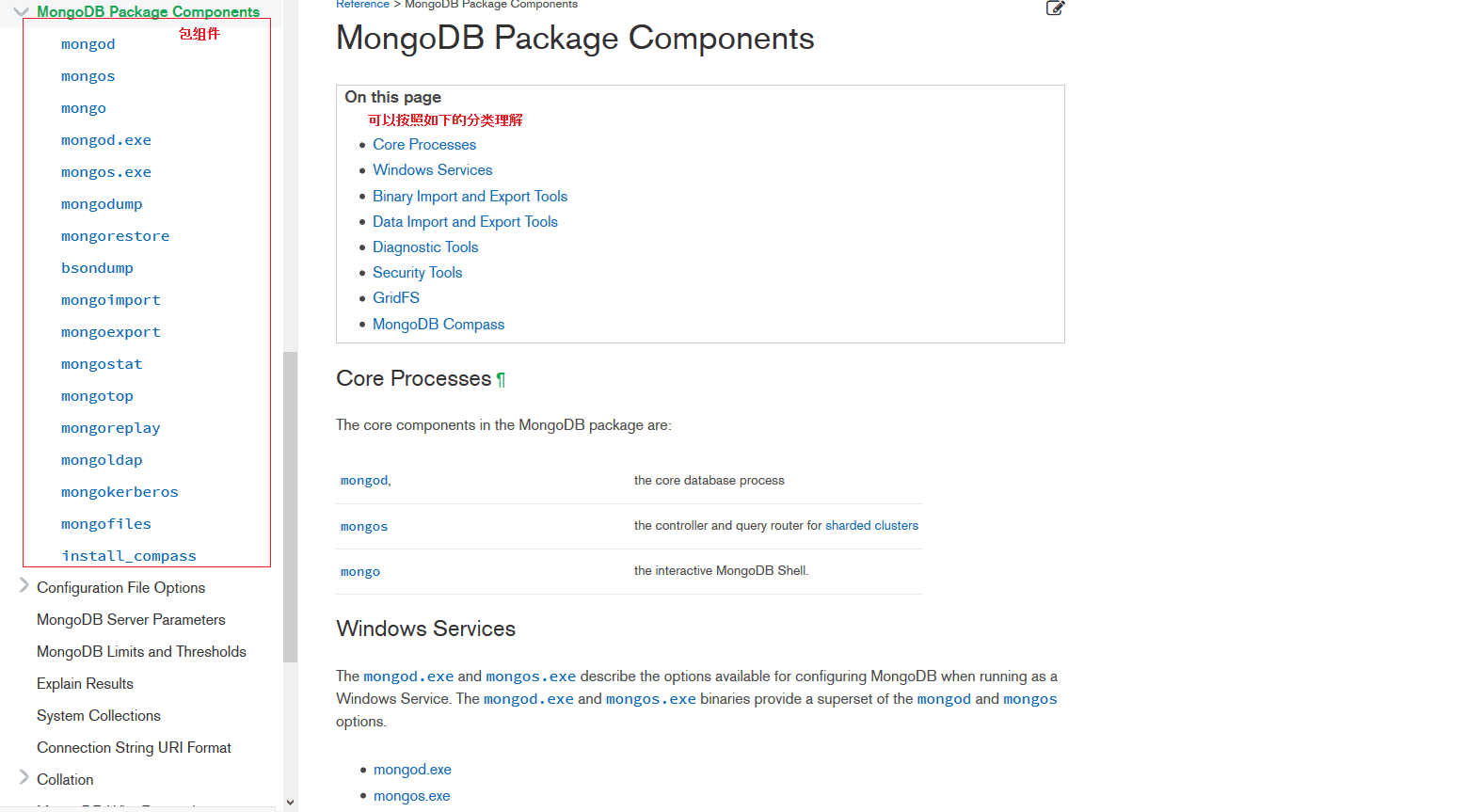 包组件可以在官网MongoDB Package Components在新窗口打开找到详细的用法。