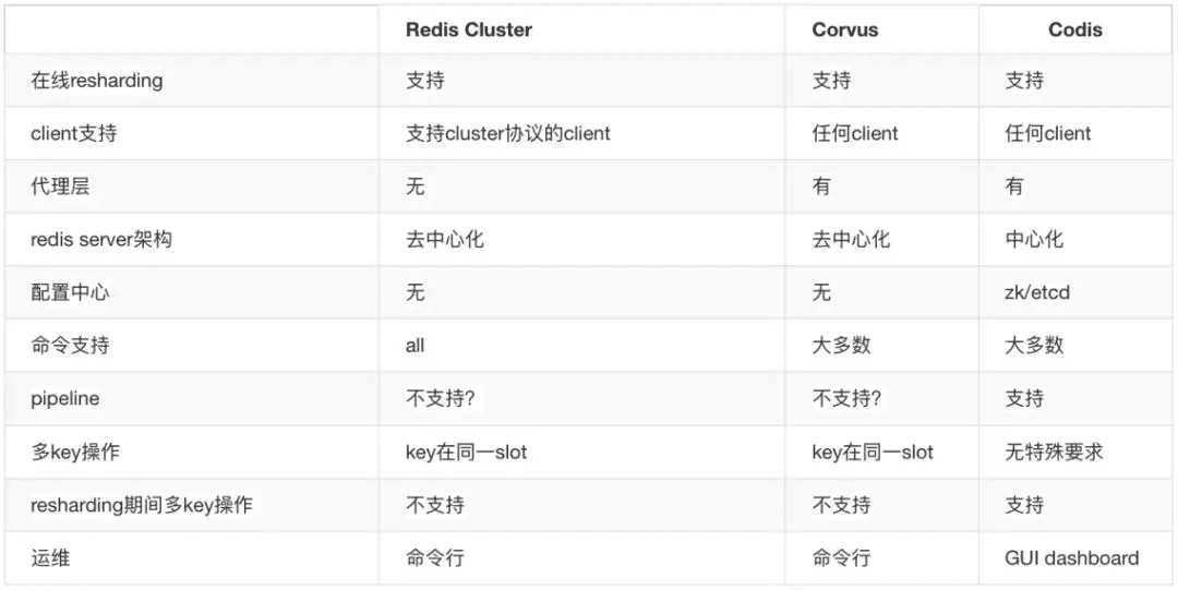 因此,我们借鉴了开源经验,也调研了Twemproxy、Codis、Corvus、Redis-Cluser这些功能: