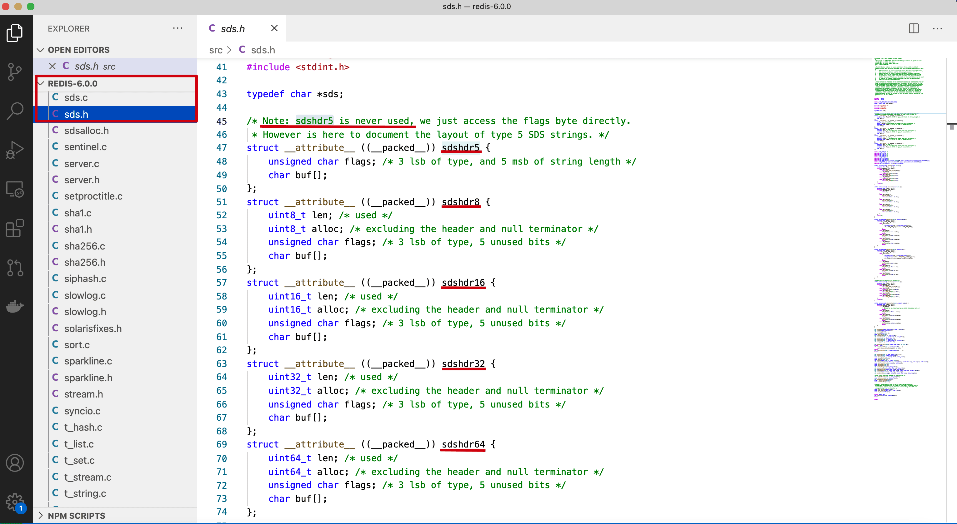 通过上图我们可以看到,SDS有五种不同的头部. 其中sdshdr5实际并未使用到. 所以实际上有四种不同的头部, 分别如下: