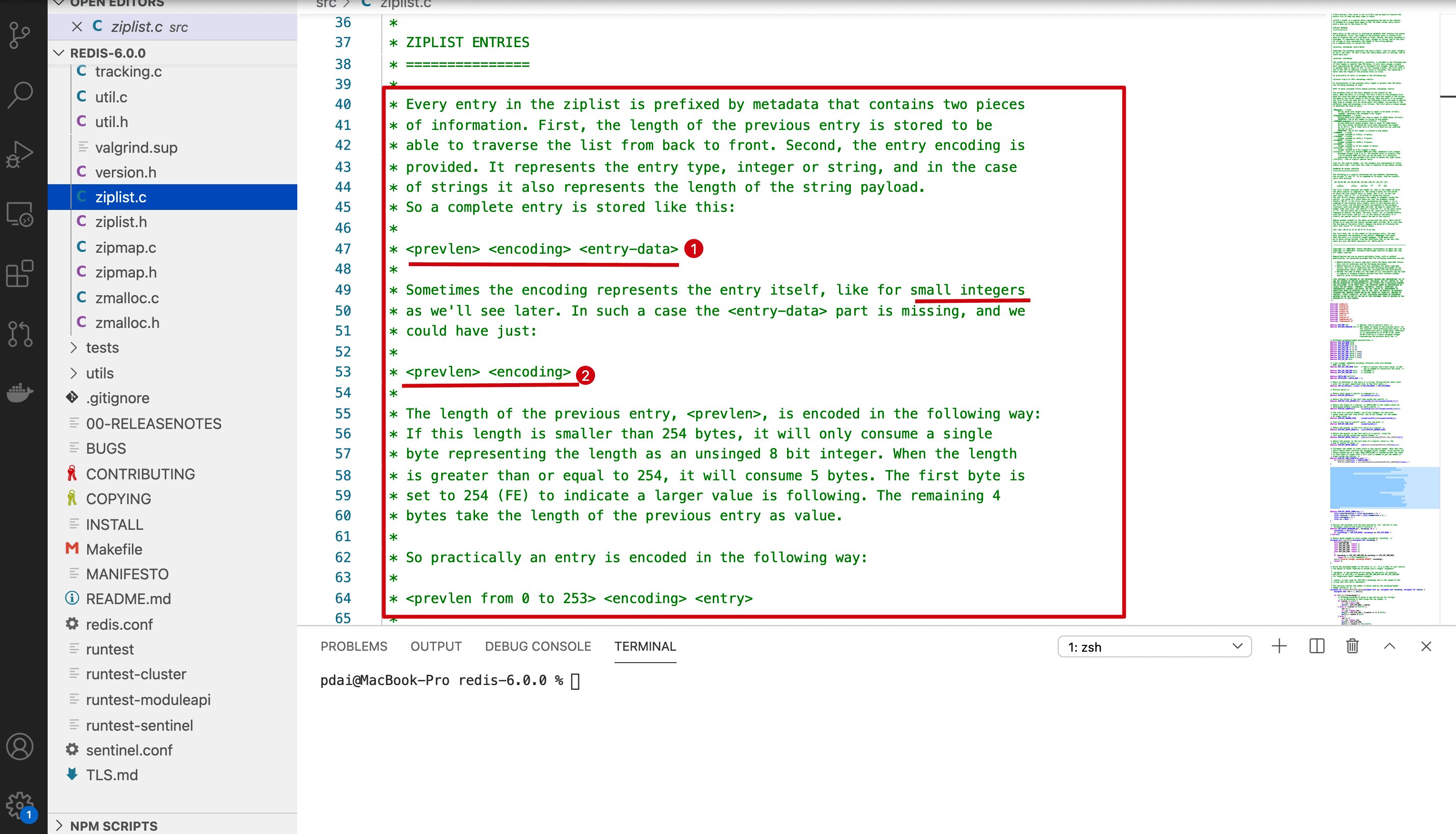 } zlentry;prevrawlensize表示 previous_entry_length字段的长度prevrawlen表示 previous_entry_length字段存储的内容lensize表示 encoding字段的长度len表示数据内容长度headersize表示当前元素的首部长度,即previous_entry_length字段长度与encoding字段长度之和encoding表示数据类型p表示当前元素首地址