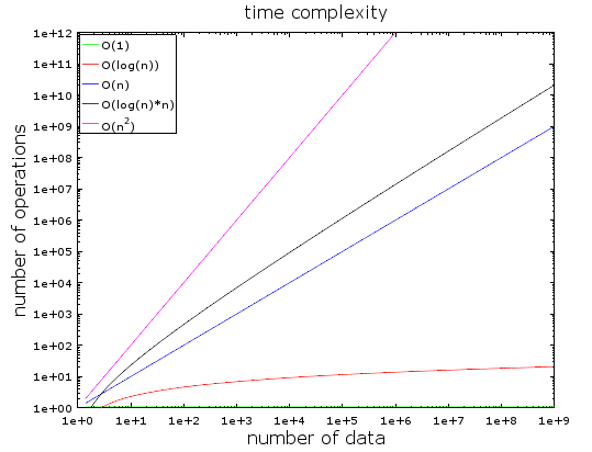 - 红:O(log(n))对数阶复杂度,即使在十亿级数据量时也很低。