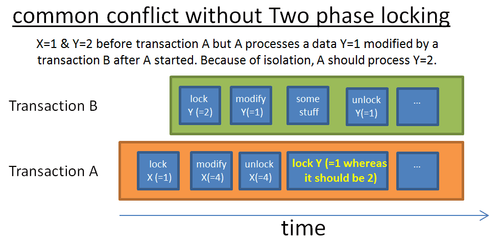 实现纯粹的隔离最简单的方法是:事务开始时获取锁,结束时释放锁。就是说,事务开始前必须等待确保自己能加上所有的锁,当事务结束时释放自己持有的锁。这是行得通的,但是为了等待所有的锁,大量的时间被浪费了。