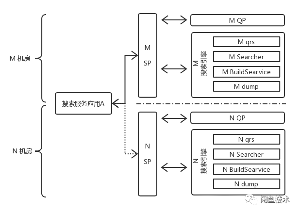 闲鱼商品量飞速增长,目前已经达到数十亿;接入了数百的索引字段,由于闲鱼商品非结构化的原因,索引字段中只有一小部分供业务使用;另外大部分都是算法接入的索引,比如大量抽出来的标签数据,向量化数据等,这些向量化数据非常大;最终的情形表现为闲鱼商品搜索引擎的DUMP处理逻辑比较复杂,而且索引数据总量异常庞大,增量消息量也处在非常高的水位,再加上闲鱼商品单库存的现状;因此对数据更新的实时性要求非常高,这些都给稳定性带来了极大的制约。 索引数据是搜索引擎的内容核心,如果进入引擎的索引数据有问题,或者新变更的数据没有更新到引擎索引中,将直接影响搜索服务的质量; 搜索引擎单机房部署期间,时常会因为一些不稳定的因素,导致DUMP全量失败,或者增量延迟,甚至停止;一旦引擎DUMP出现问题,需要恢复基本都很困难,很多场景下甚至需要重新跑全量才能解决问题;但是闲鱼商品索引数据体量较大,做一次全量往往要大半天,没有办法快速止血,对业务造成了较大的影响;于是对搜索引擎进行双机房部署容灾(M/N机房),互为备份;