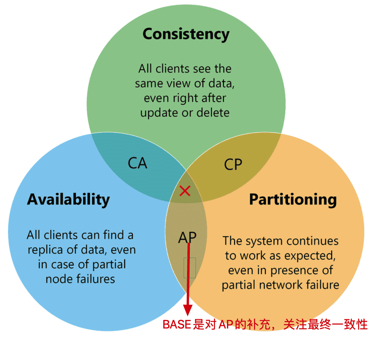 BASE是“Basically Available, Soft state, Eventually consistent(基本可用、软状态、最终一致性)”的首字母缩写。其中的软状态和最终一致性这两种技巧擅于对付存在分区的场合,并因此提高了可用性。