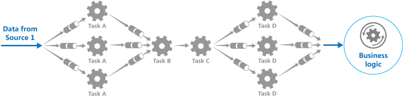 对于架构上也可以有这样的模式,在数据源进入到业务逻辑处理之前(或之后,或前后),我们可以配置一系列的数据过滤器完成各种数据转化和处理的任务。Task和Task之间可以是同步调用,也可以使用MQ做一定的可伸缩性设计。还可以把过滤器的配置信息保存在配置系统中甚至根据上下文动态构建出管道,实现更灵活的前置或后置流程处理。