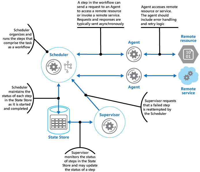 25、调度、代理、主管模式:在一组分布式服务和其它远程资源之间协调一组操作