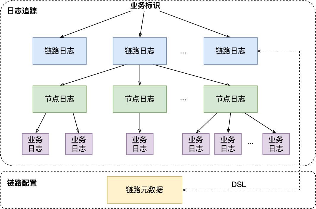 一次业务追踪就是逻辑链路的某一次执行情况的还原,逻辑链路完整准确地描述了业务逻辑全景,同时作为载体可以实现业务日志的高效组织。