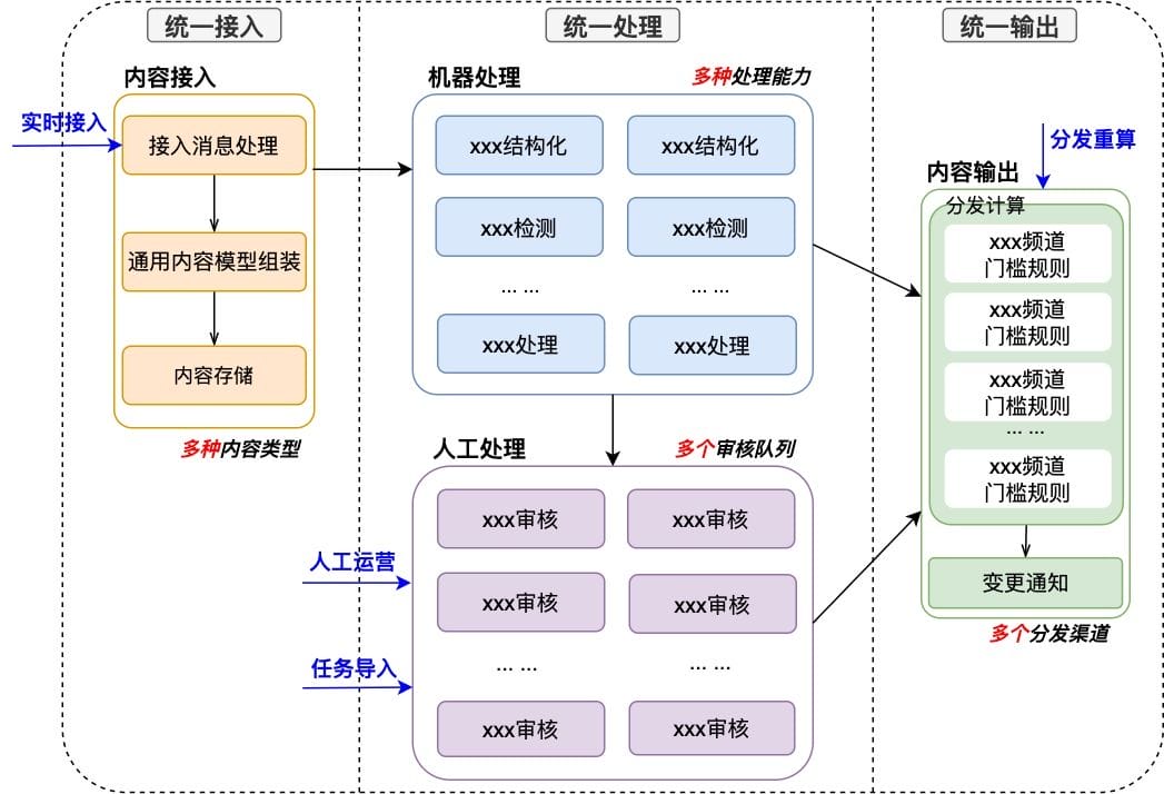 - 统一处理:统一处理能力建设,积累并完善通用的机器处理和人工运营能力,保证内容合法合规,属性丰富。
