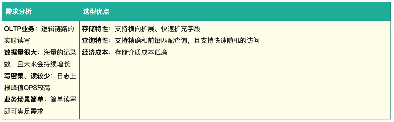 - 日志存储:完成日志解析后,日志会按照树状的存储模型进行落地存储,结合存储的需求分析以及各个存储选项的特点,点评内容平台最终选择HBase作为存储选型。
