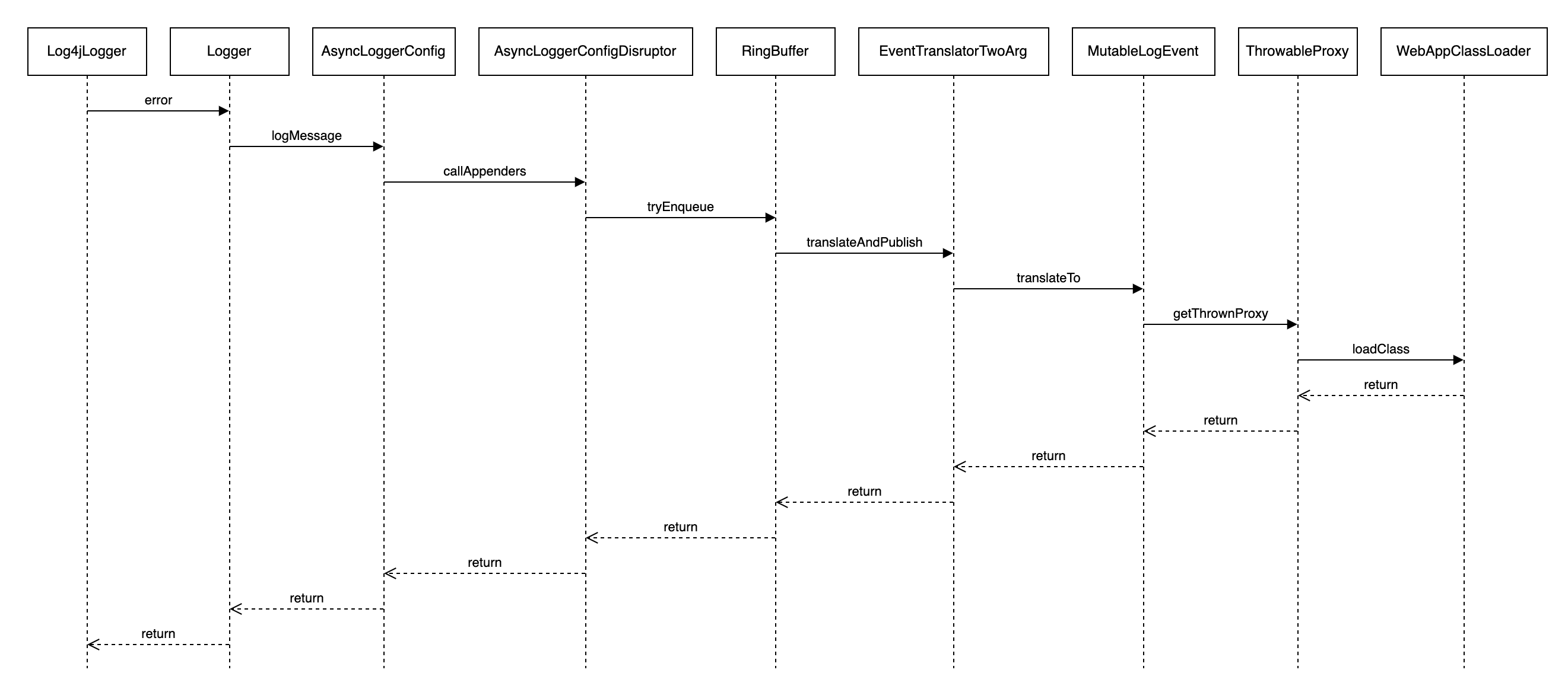 - 不建议日志配置文件中使用AsyncAppender,建议自定义Appender实现,因为AsyncAppender是日志框架默认提供的,目前最新版本中仍然存在日志事件入队前就触发加载异常堆栈类的问题,可能导致业务线程Block。