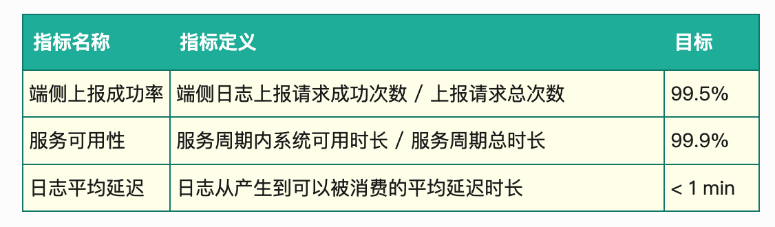 为了衡量终端实时日志系统的可用性,我们制定了以下核心 SLA 指标: