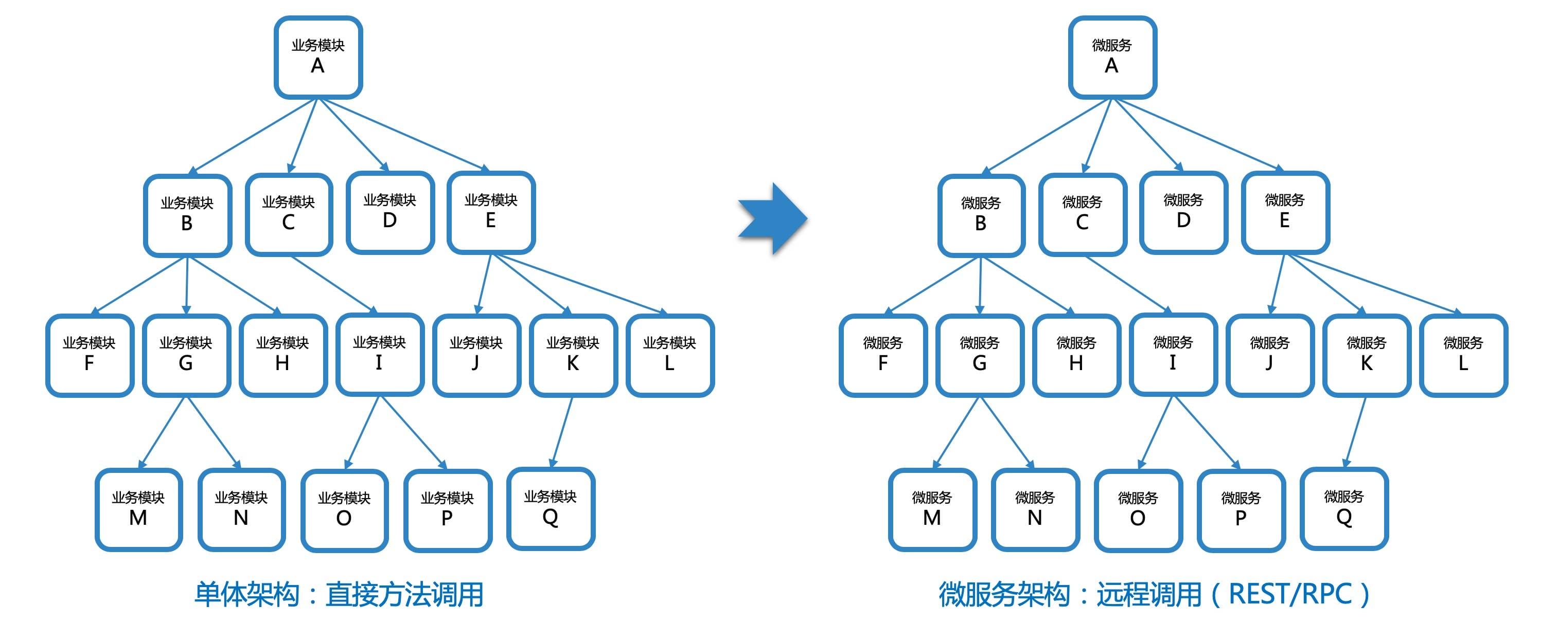 - 在微服务之前:应用程序由多个耦合在一起的模块组成,这些模块通过内存空间进行方法调用…..
