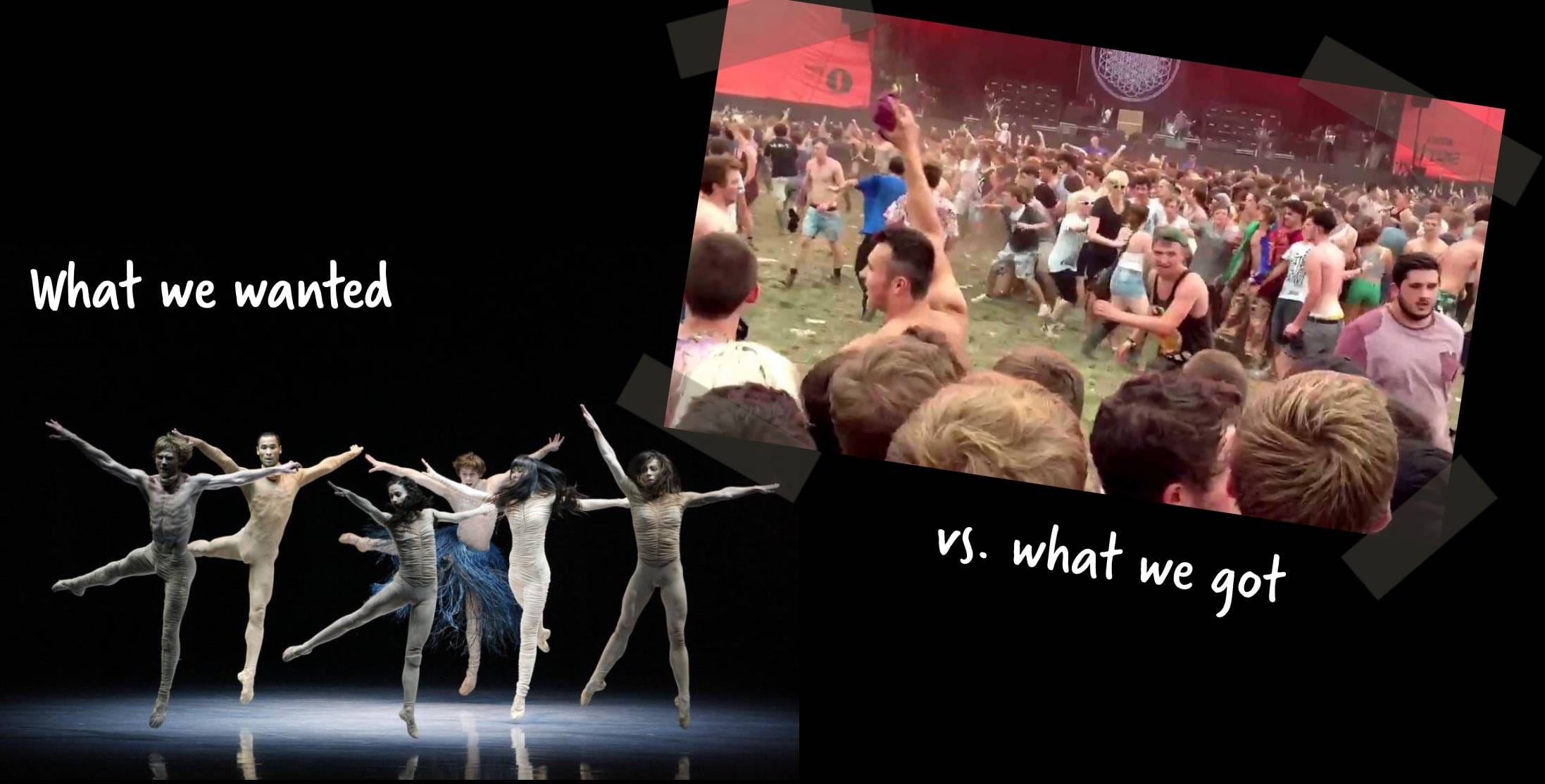 左边是期望通过编排(Orchestration)方式得到的整齐划一的理想目标,右边是实际得到的大型翻车现场。