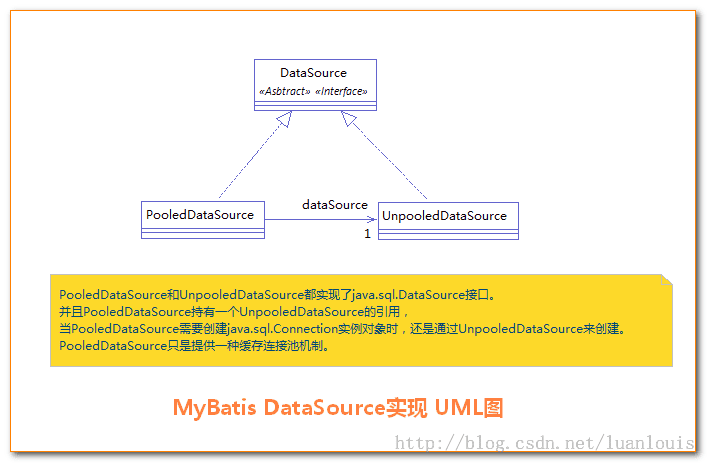 相应地,MyBatis内部分别定义了实现了java.sql.DataSource接口的UnpooledDataSource,PooledDataSource类来表示UNPOOLED、POOLED类型的数据源。